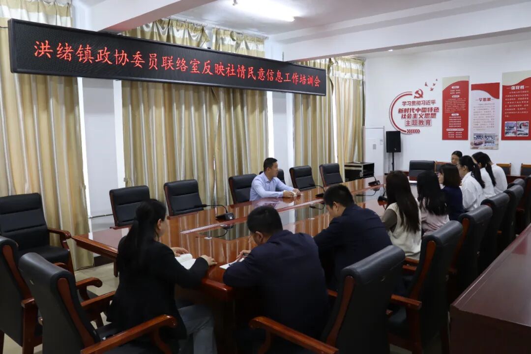 为进一步促进社情民意信息工作提质增效,提升政协委员履职能力。近日,洪绪镇政协委员联络室举办了反映社情民意信息工作培训会。镇党委副书记、政协委员联络室主任殷允昌,住镇政协委员,政协委员联络室、调研室、宣传科等相关部门人员参加培训。