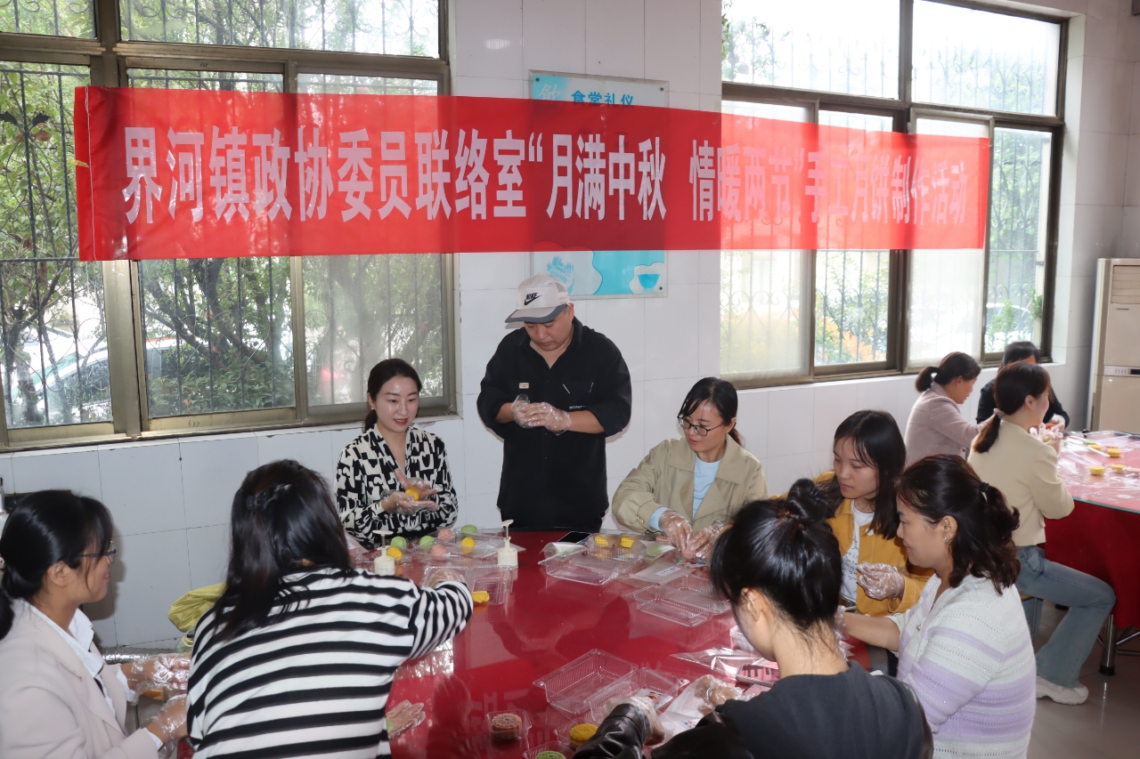 中秋国庆喜相逢,家国同庆情意浓。为弘扬中华民族优秀传统文化,营造欢乐祥和、文明和谐的节日氛围,9月28日,界河镇政协委员联络室组织开展“月满中秋 情暖两节”手工月饼制作活动。镇党委副书记、政协委员联络室主任史宝瑞,部分住镇政协委员及委员联络室工作人员等参加活动。