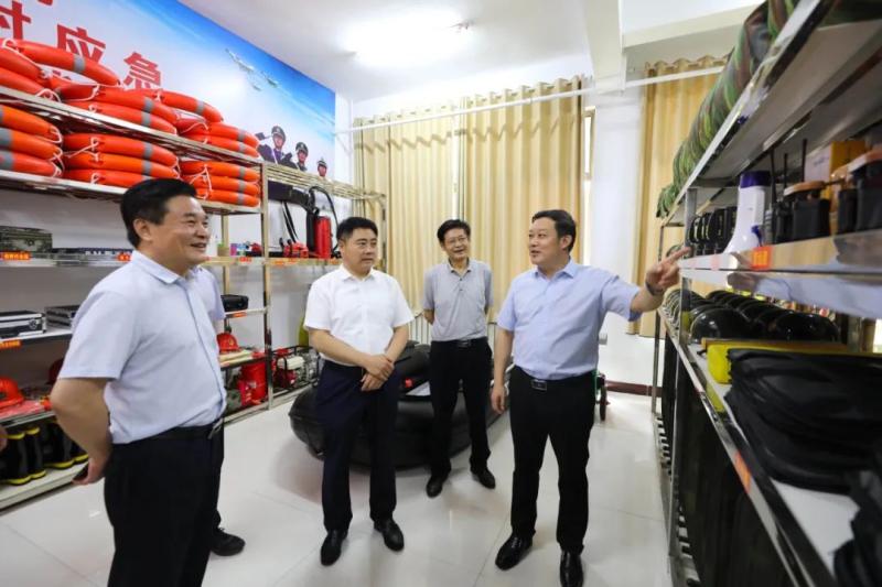 薛登峰一行先后来到马河水库、户主东库清淤、幸福河复堤、防汛物资储备库以及马河水库管理成就展览室等现场,听取了有关情况,详细了解了水库工程分布、防汛队伍、水库泄洪能力、设备检修、防汛物资储备等情况。
