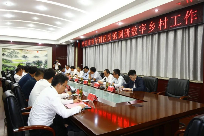 在西岗镇,调研组观看了滕州市、西岗镇“数字乡村”平台建设专题片,并召开座谈会,听取滕州市及西岗镇“数字乡村”建设情况汇报,并围绕数字乡村建设进行交流发言。