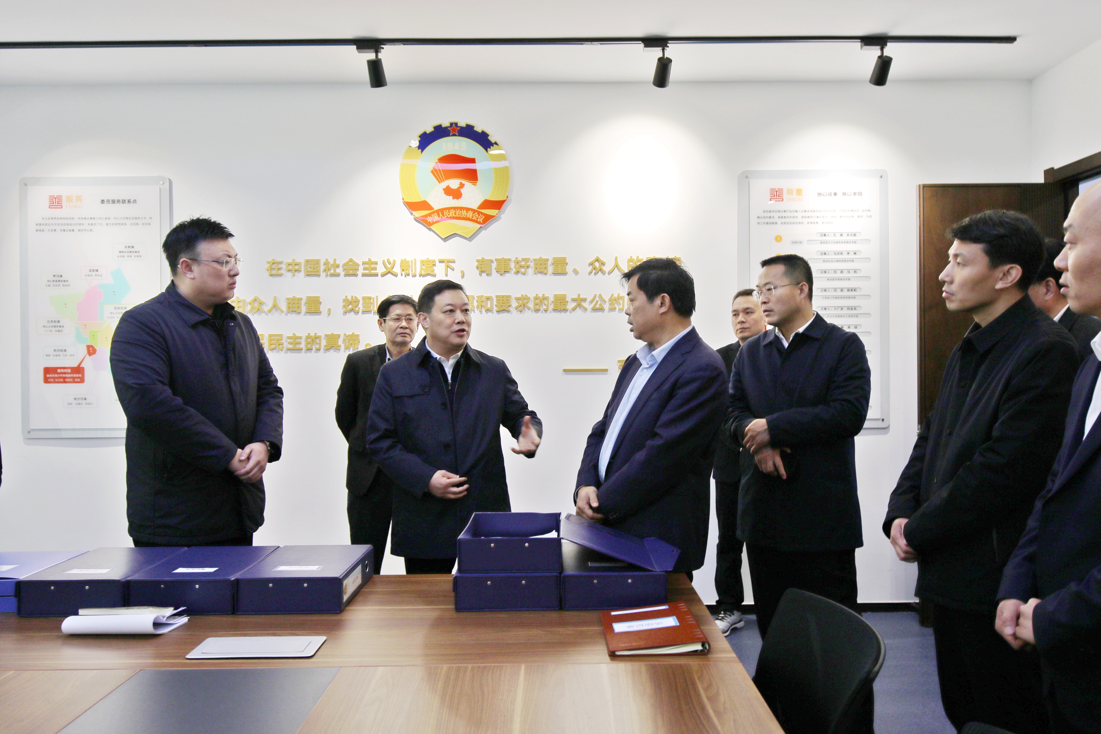 张学功一行先后察看了工商联界委员协商议事厅、荆河街道委员协商议事厅、农工党界卫生界委员协商议事厅、善南街道委员协商议事厅、九三学社界委员协商议事厅、东沙河街道委员协商议事厅、经济界委员协商议事厅、东郭镇委员协商议事厅等现场,实地察看了委员协商议事厅制度建设、人员组成、工作开展等情况,对滕州市政协委员协商议事厅工作给予充分肯定,并就进一步发挥委员协商议事厅作用、扎实开展特色活动、激发委员履职活力等提出意见建议。