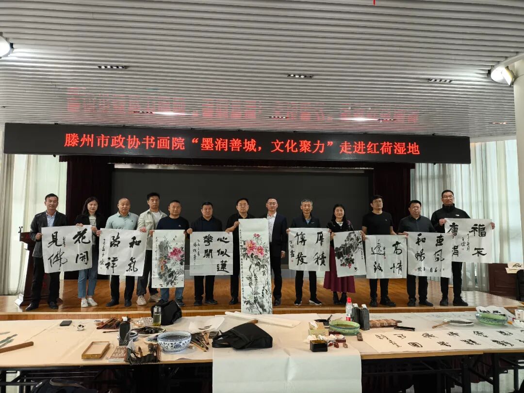 4月24日下午,滕州市政协书画院组织8位知名书画家走进红荷湿地景区,开展“墨润善城、文化聚力”助推文旅发展主题书画笔会活动。