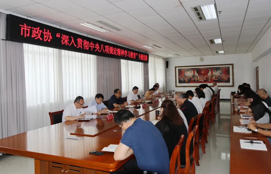 薛登峰指出,人民政协肩负“把党中央决策部署和对人民政协工作要求落实下去、把海内外中华儿女智慧和力量凝聚起来的政治责任”,必须把学习贯彻中央八项规定精神作为锤炼政治品格、强化纪律作风、提升履职效能的重要抓手,以自我革命精神推动政协事业高质量发展。市政协机关党员干部要始终牢记“国之大者”,把中央八项规定精神作为政治必修课、履职基本功,以“严”的基调强化正风肃纪,以“实”的成效彰显担当作为,努力在服务全市发展大局中展现政协新风貌、作出新贡献。