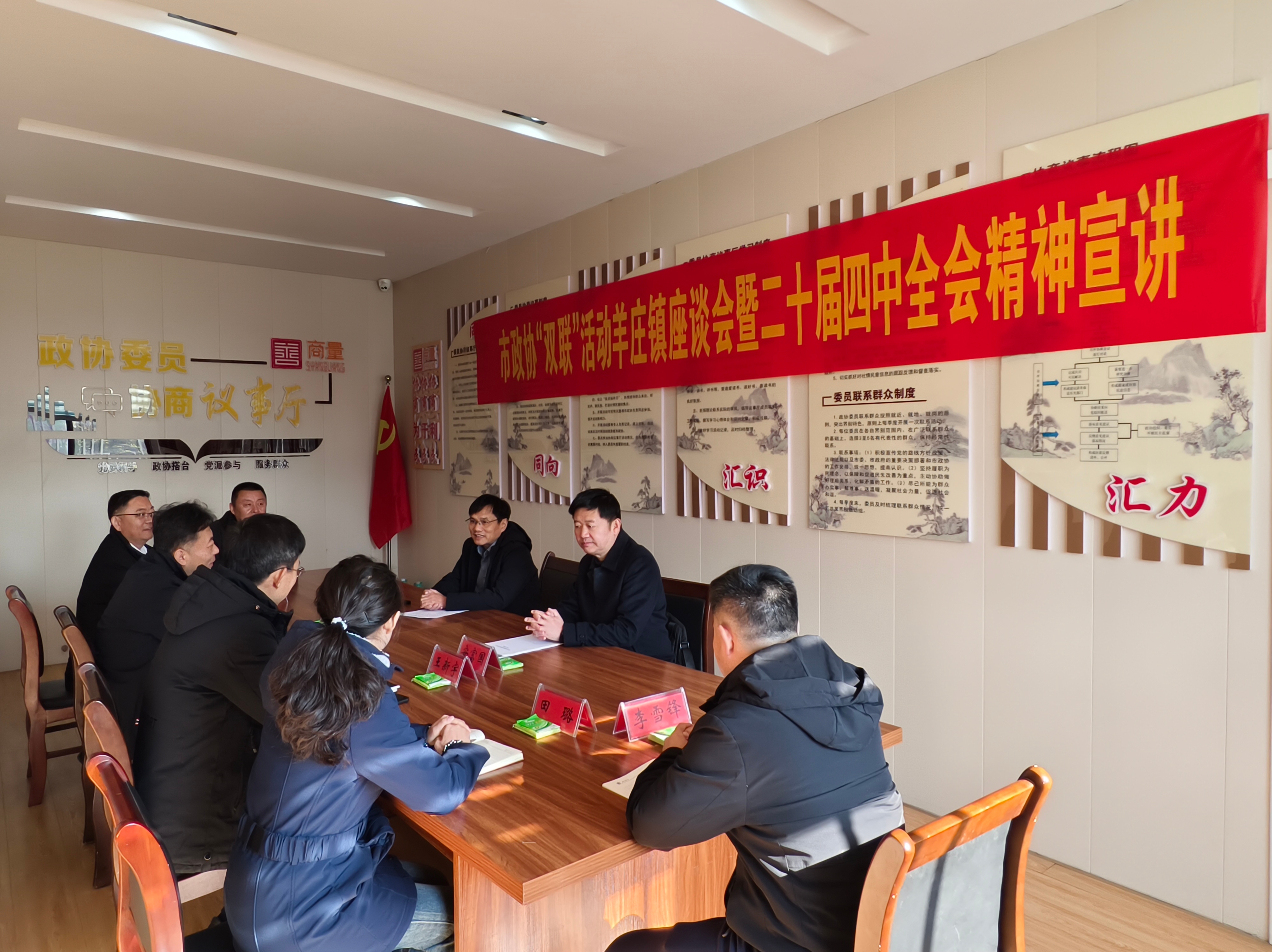 近日,市政协党组成员、副主席董鸿洋带队,先后赴柴胡店镇、羊庄镇、木石镇以及市政协经济界委员协商议事厅开展“双联”活动,并专题宣讲党的二十届四中全会精神。市政协经济委负责同志及部分政协常委、委员参加活动。