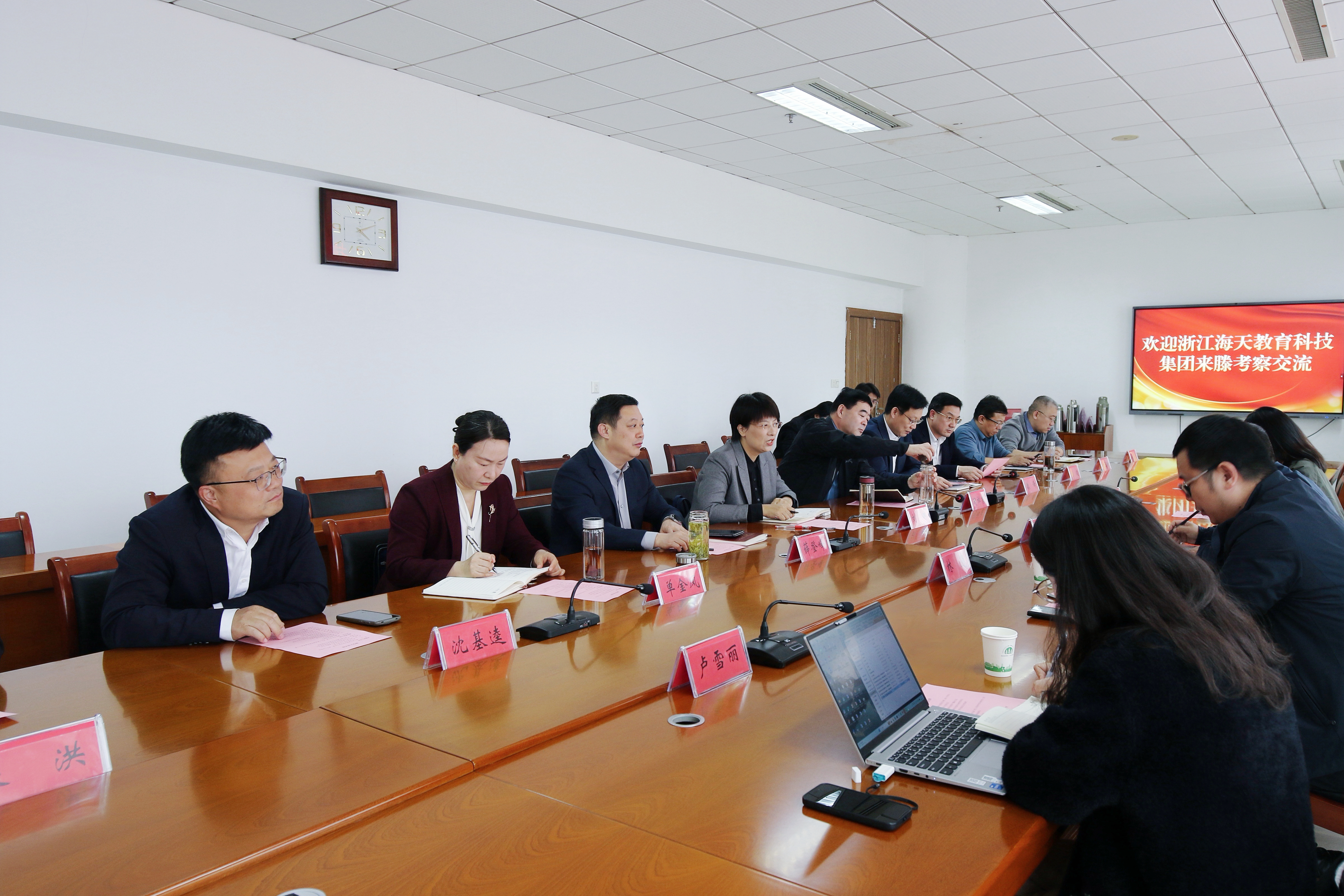 3月31日,浙江海天教育科技集团总经理、海天大学校长陈兴一行来滕,就推进产教深度融合、共建实训基地、深化校企协同合作等重点事宜,开展实地考察与深入洽谈。市政协主席、枣庄工程技师学院及教育重大工程指挥部指挥长薛登峰,市政府副市长刘琳,市政协副主席单金凤,枣庄科技职业学院院长闵祥寨出席活动;市人力资源和社会保障局、发展和改革局、科学技术局、工业和信息化局、枣庄工程技师学院、滕发集团等相关部门及企业负责同志参加活动。