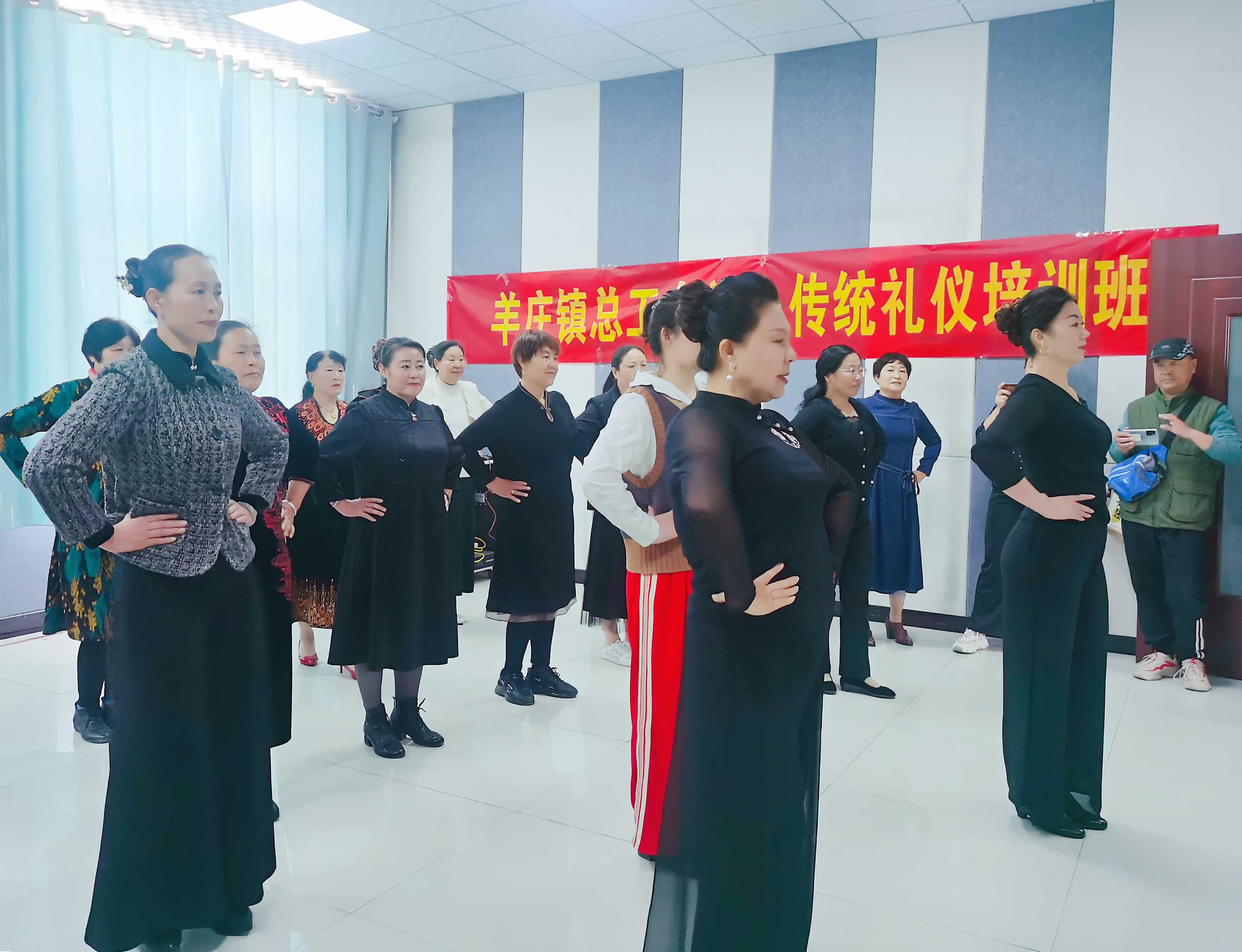 为进一步弘扬中华优秀传统文化、丰富群众业余文化生活,提升女性形象魅力,4月18日,羊庄镇总工会联合文化旅游办公室在镇新时代文明实践所举办传统礼仪文化暨旗袍走秀培训活动,辖区内30余名女职工旗袍走秀爱好者参加培训。