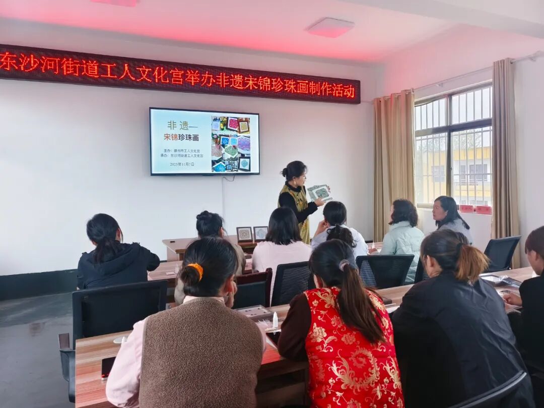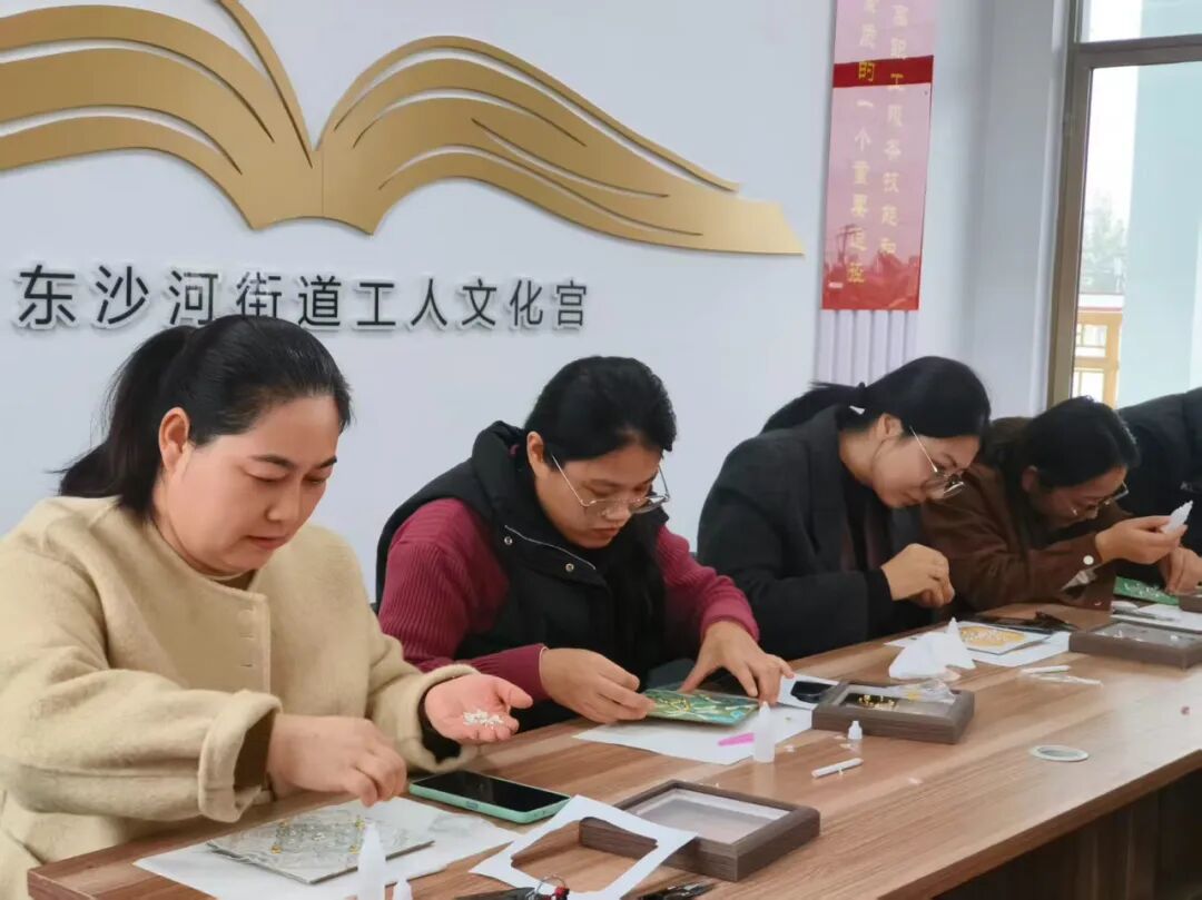 近日,东沙河街道总工会在街道工人文化宫举办了一场非遗宋锦珍珠画手工体验活动,让职工们在指尖技艺中感受传统文化的魅力。