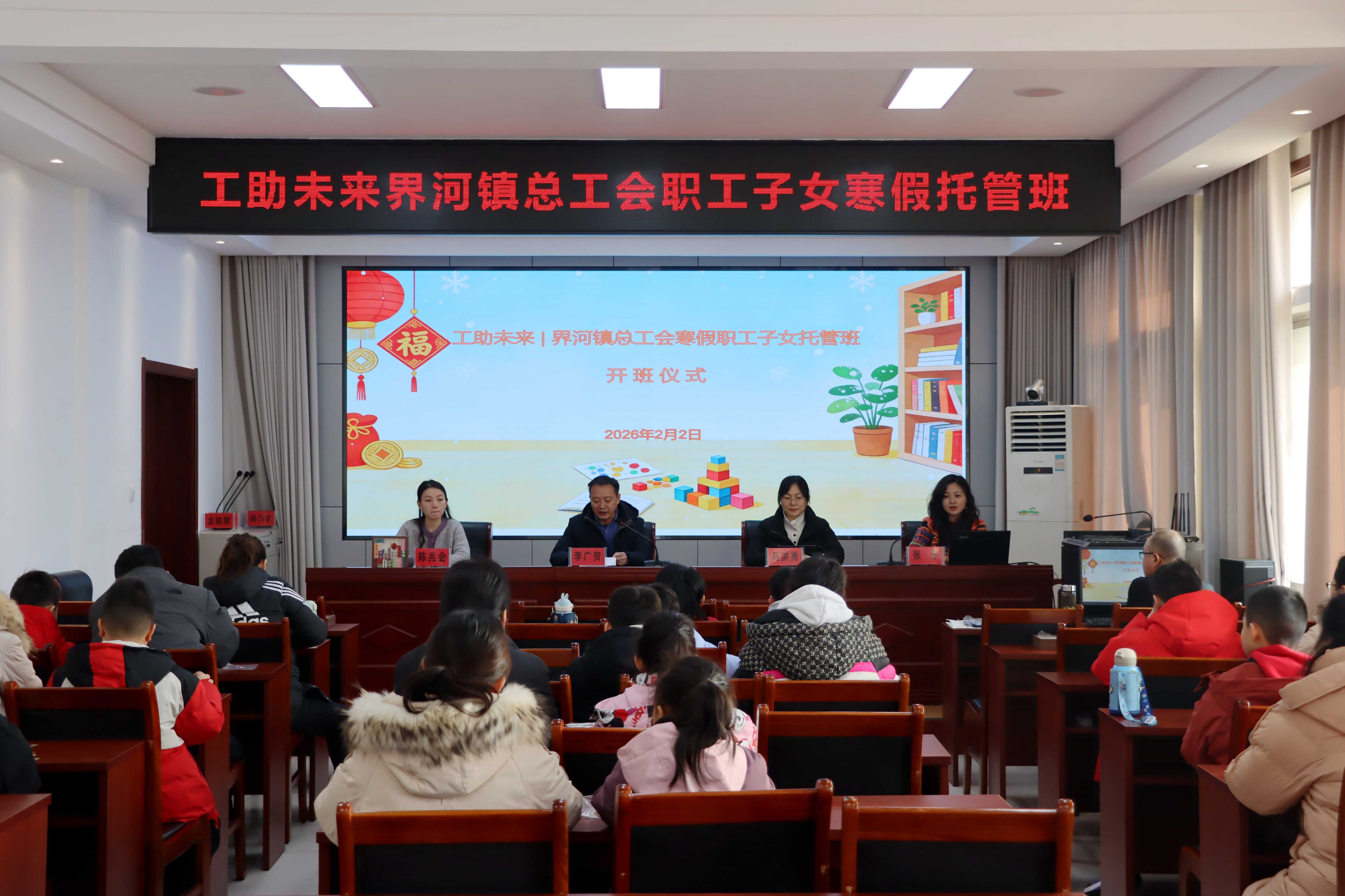 2月2日,界河镇总工会寒假职工子女托管班正式开班。界河镇总工会副主席李广贺,界河镇公共文化服务中心主任马洪秀参加活动。