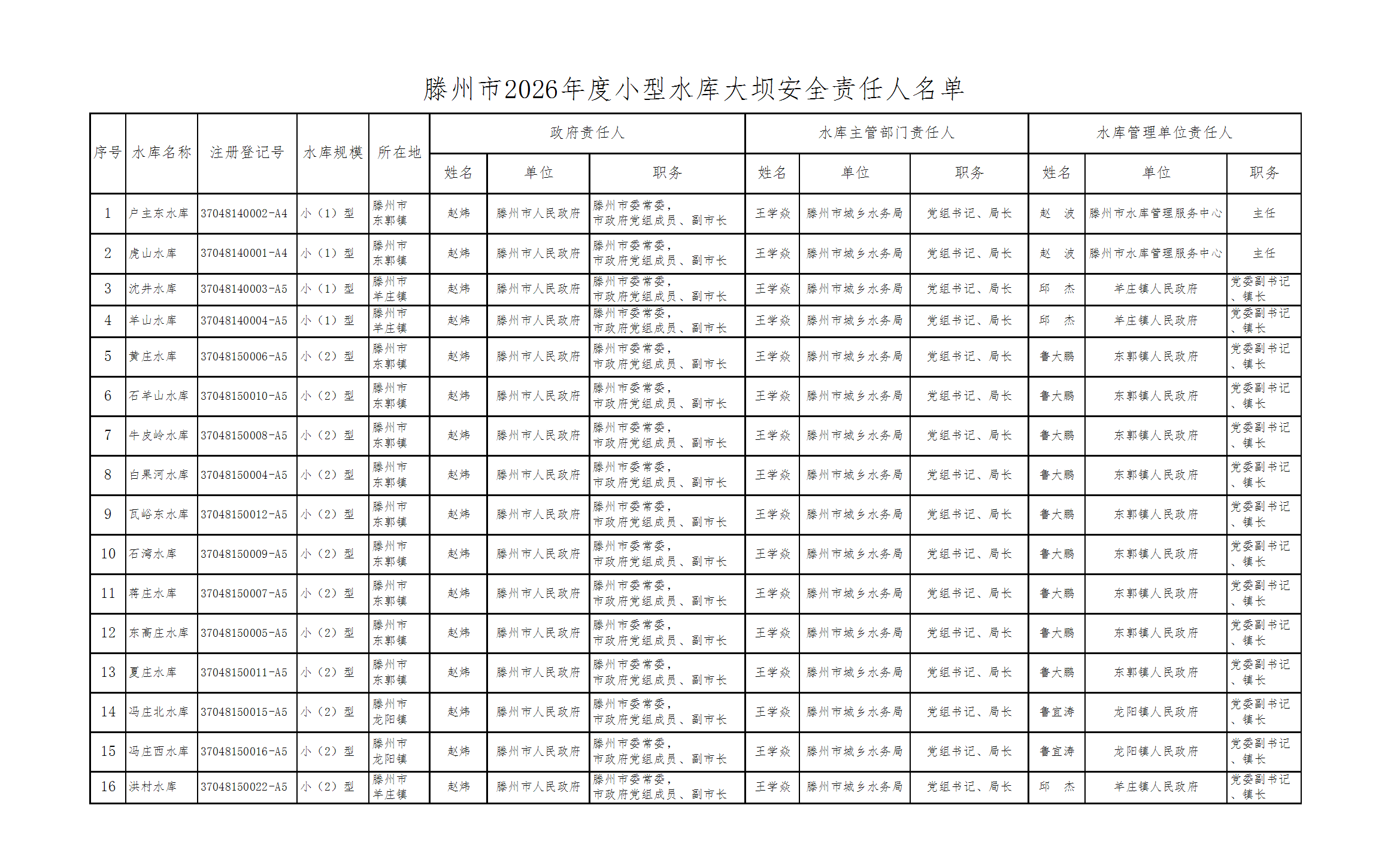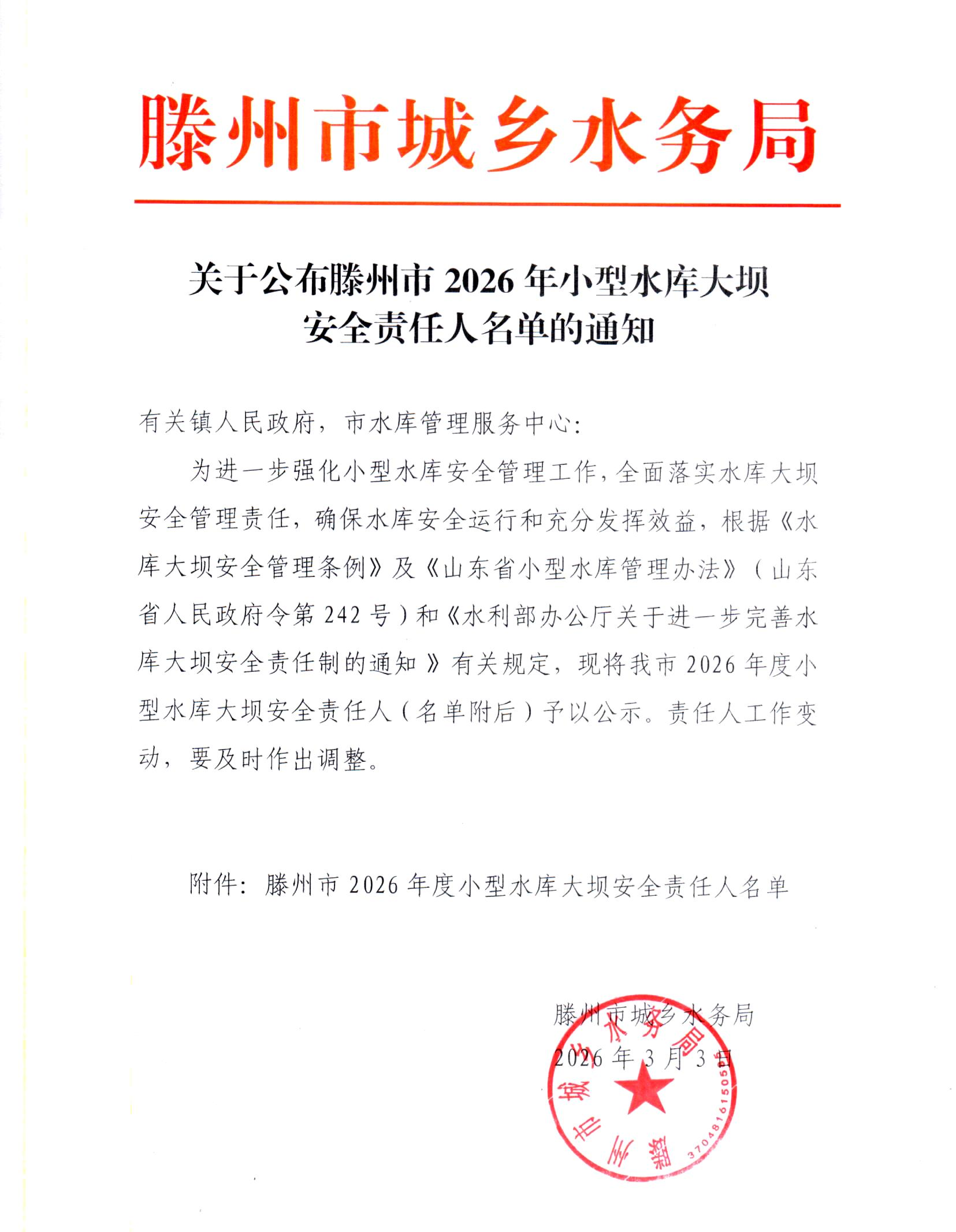 关于公布滕州市2026年小型水库大坝安全责任人名单的通知