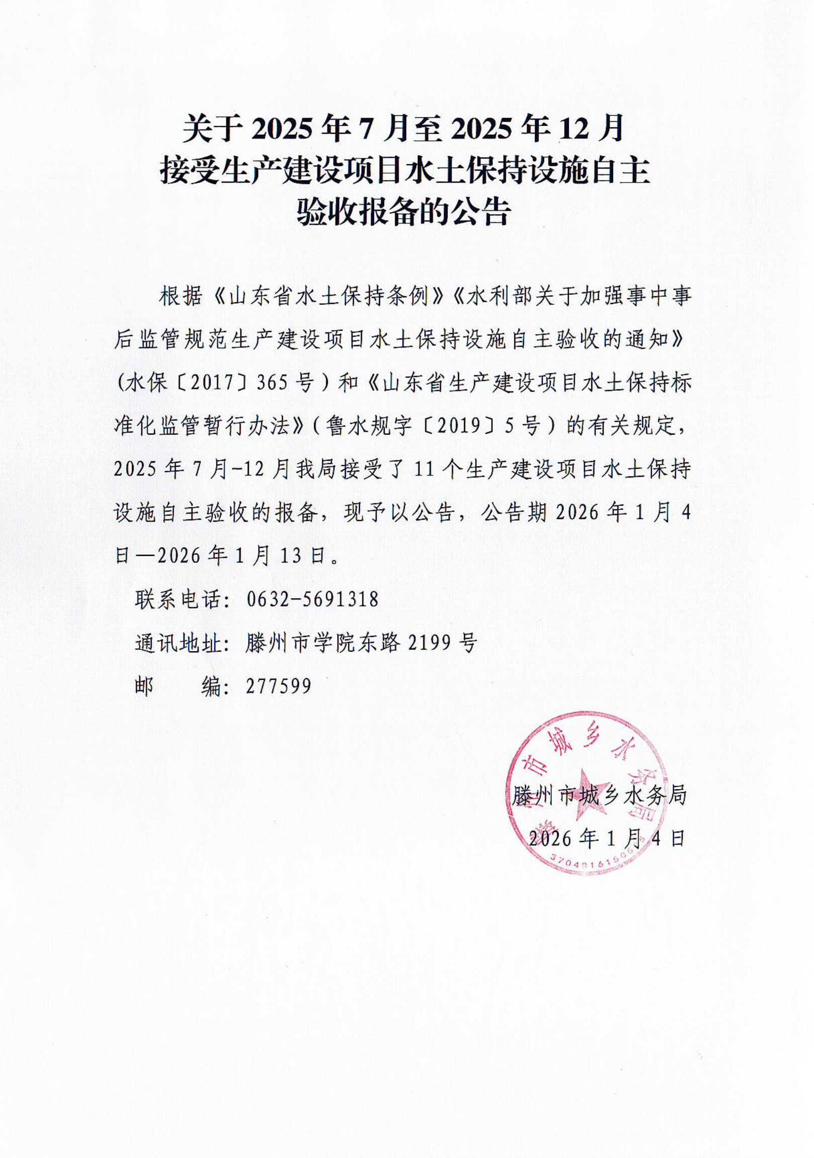 关于2025年7月至2025年12月接受生产建设项目水土保持设施自主验收报备的公告.pdf