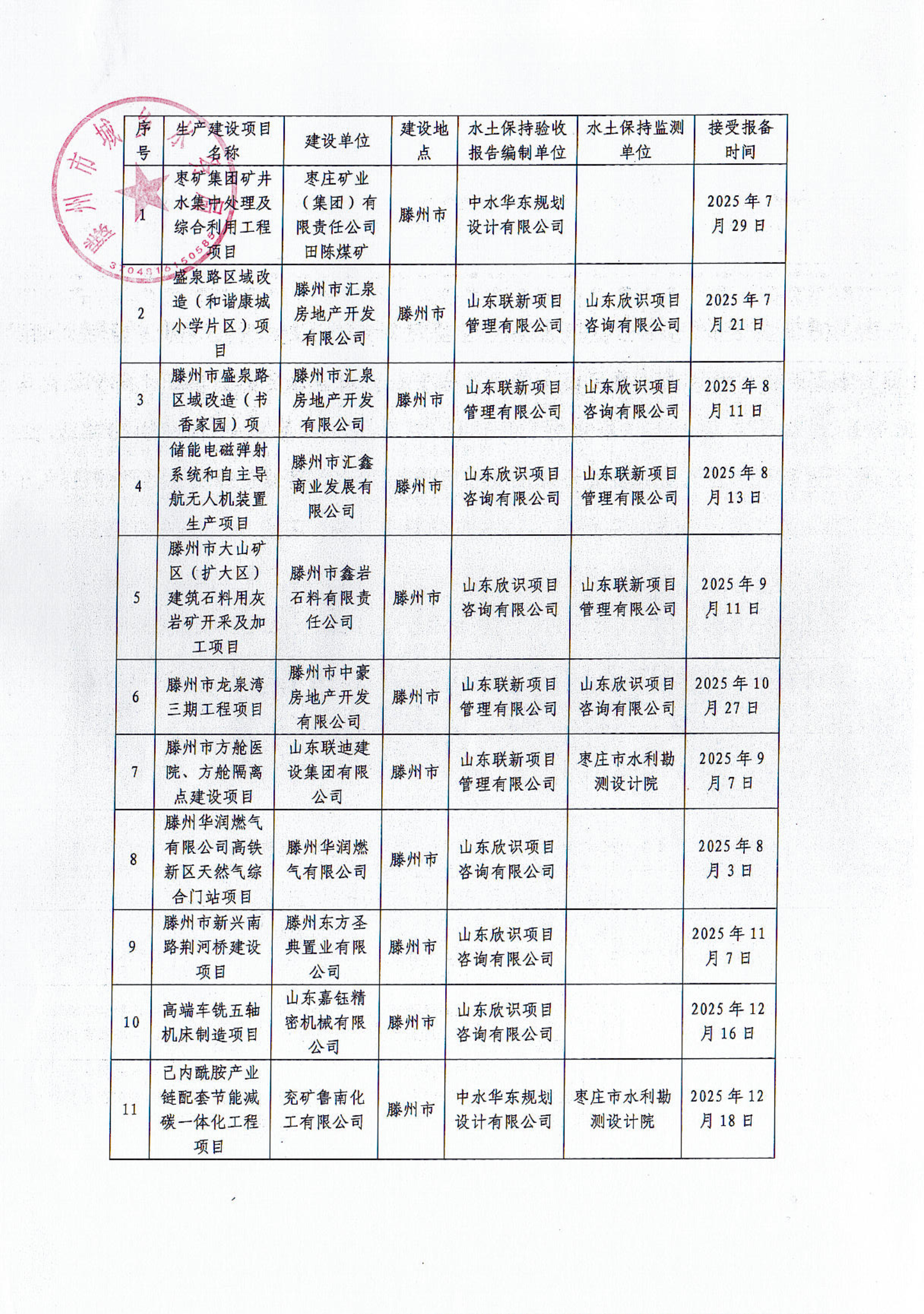 关于2025年7月至2025年12月接受生产建设项目水土保持设施自主验收报备的公告