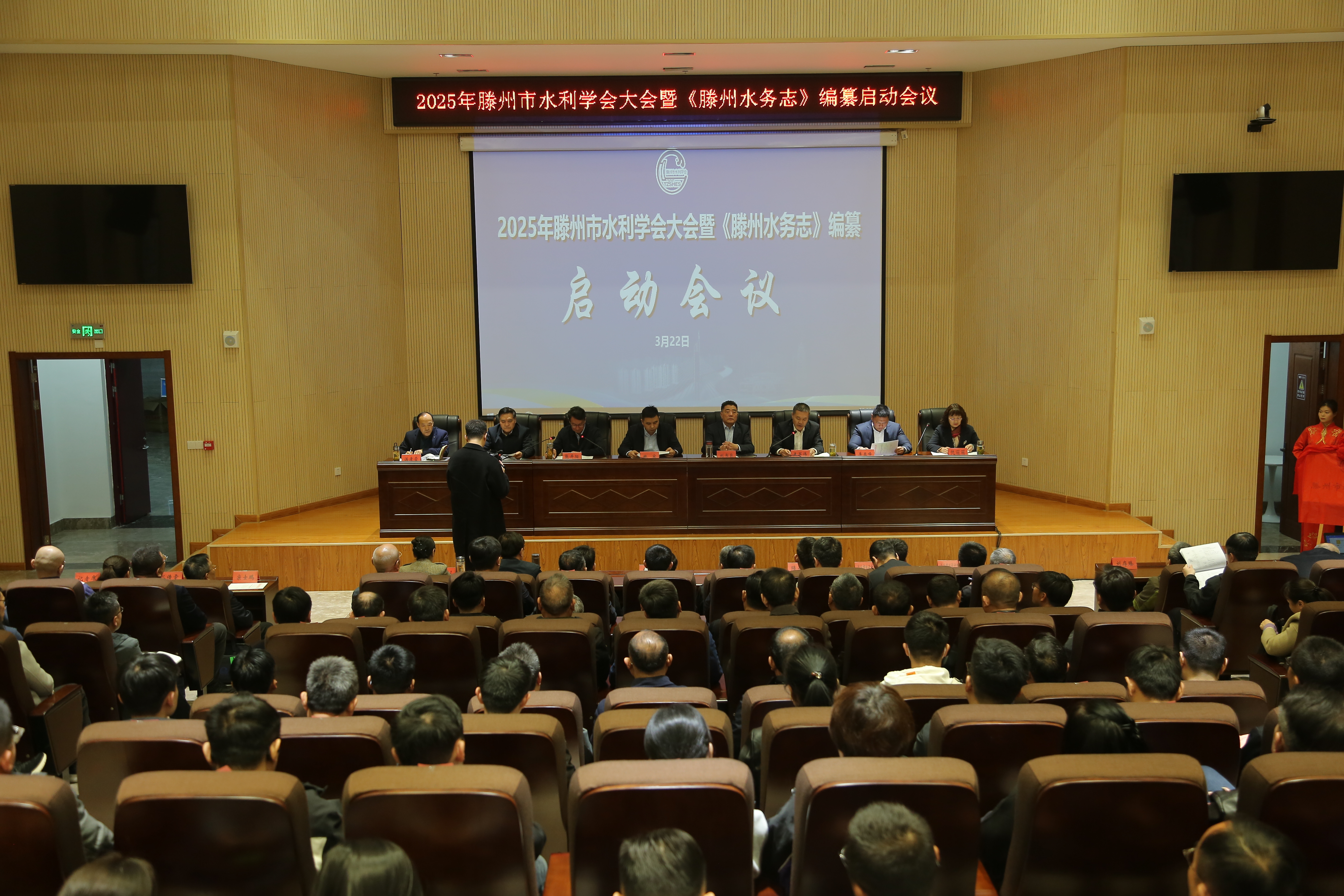 3月22日,2025年滕州市水利学会大会暨《滕州水务志》 编纂启动会议顺利召开。枣庄市水利学会理事魏宾到会指导。市水利学会名誉理事会成员、理事会成员候选人、水利学会特邀单位,各镇街水利站长,局属中心负责人、机关各科室负责人以及水利学会全体会员,滕州水务志编纂委员会和编辑组成员参加会议。