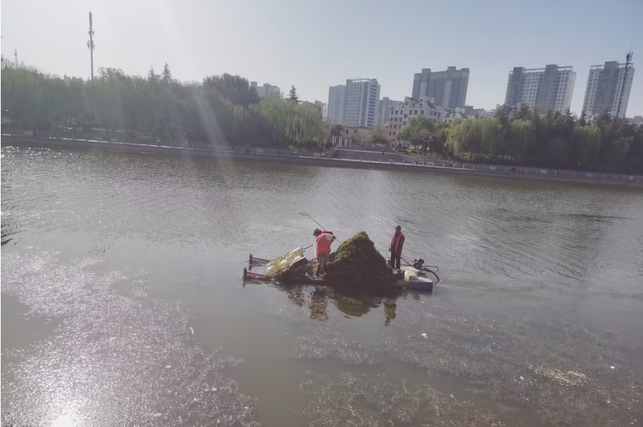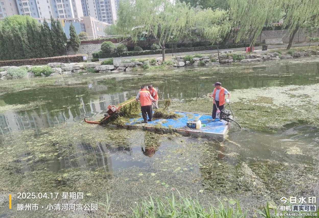 近日,随着气温升高,城区部分河道水生植物生长迅速,为维护良好的水域生态环境,滕州市河湖长制事务中心认真落实城区河道保洁长效机制,加大巡查力度,科学制定打捞方案,持续开展水草打捞清理工作,全力维护“河畅、水清、岸绿、景美”的效果。