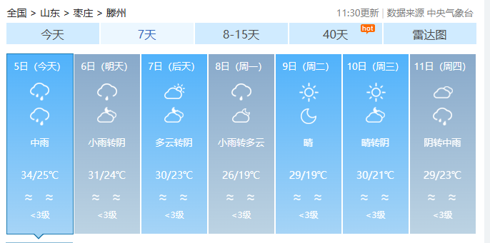 枣庄市气象局4日发布降雨预报