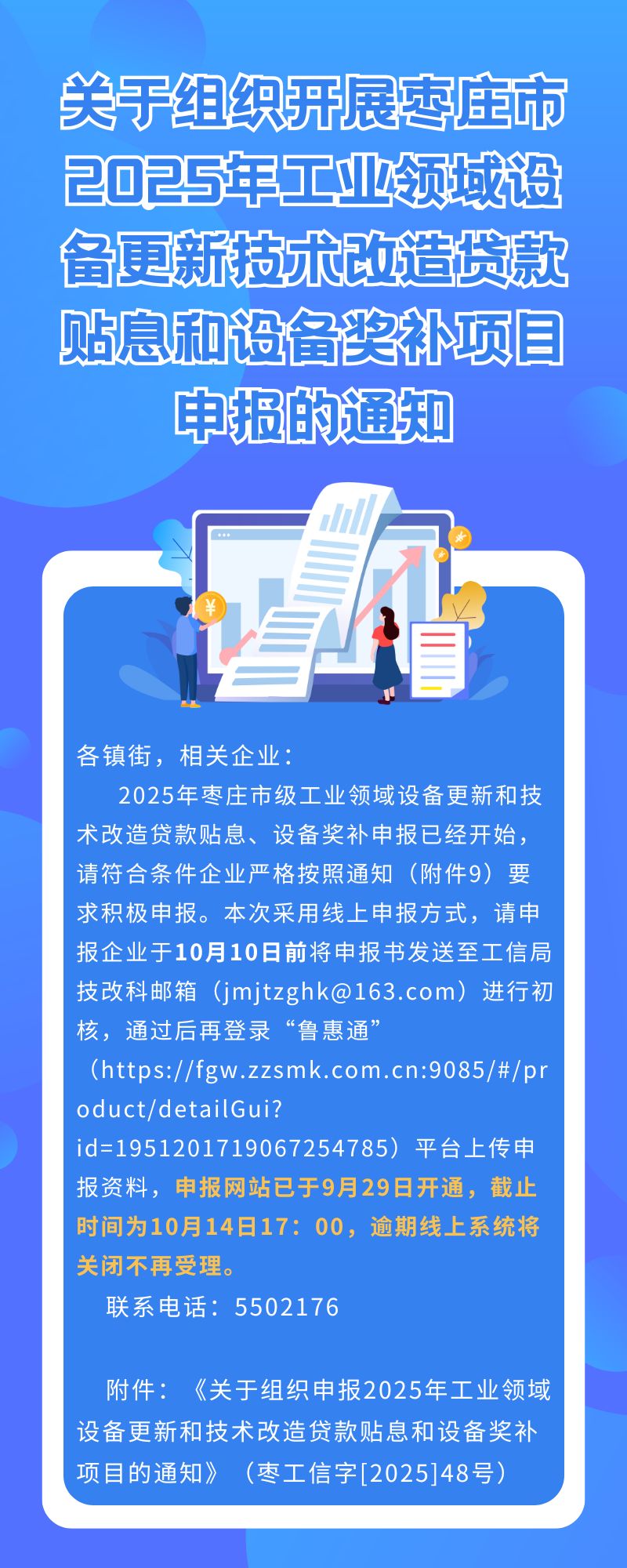 滕州市工业和信息化局 关于组织开展枣庄市2025年工业领域设备更新技术改造贷款贴息和设备奖补项目申报的通知