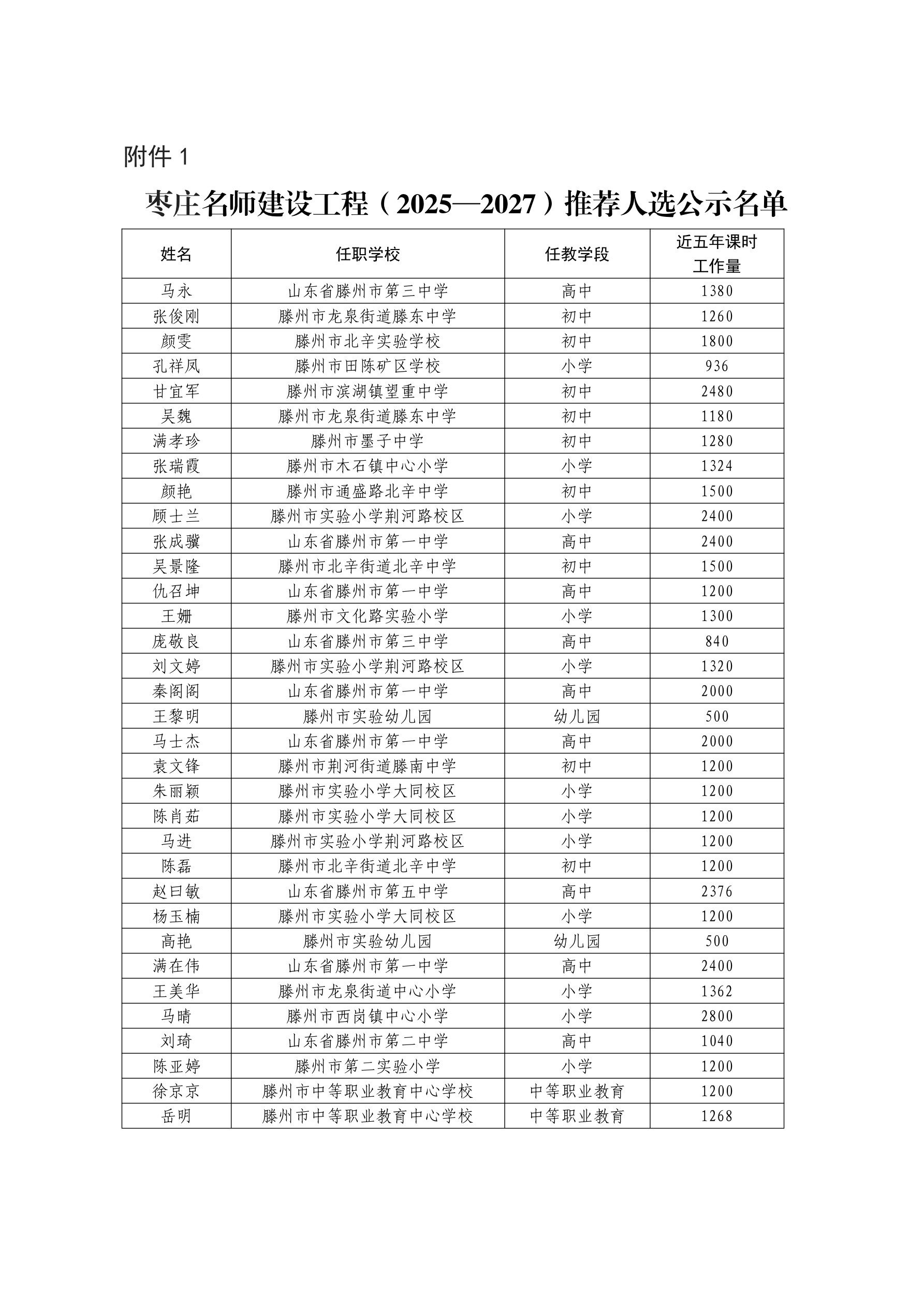 1.枣庄名师建设工程(2025—2027)推荐人选公示名单