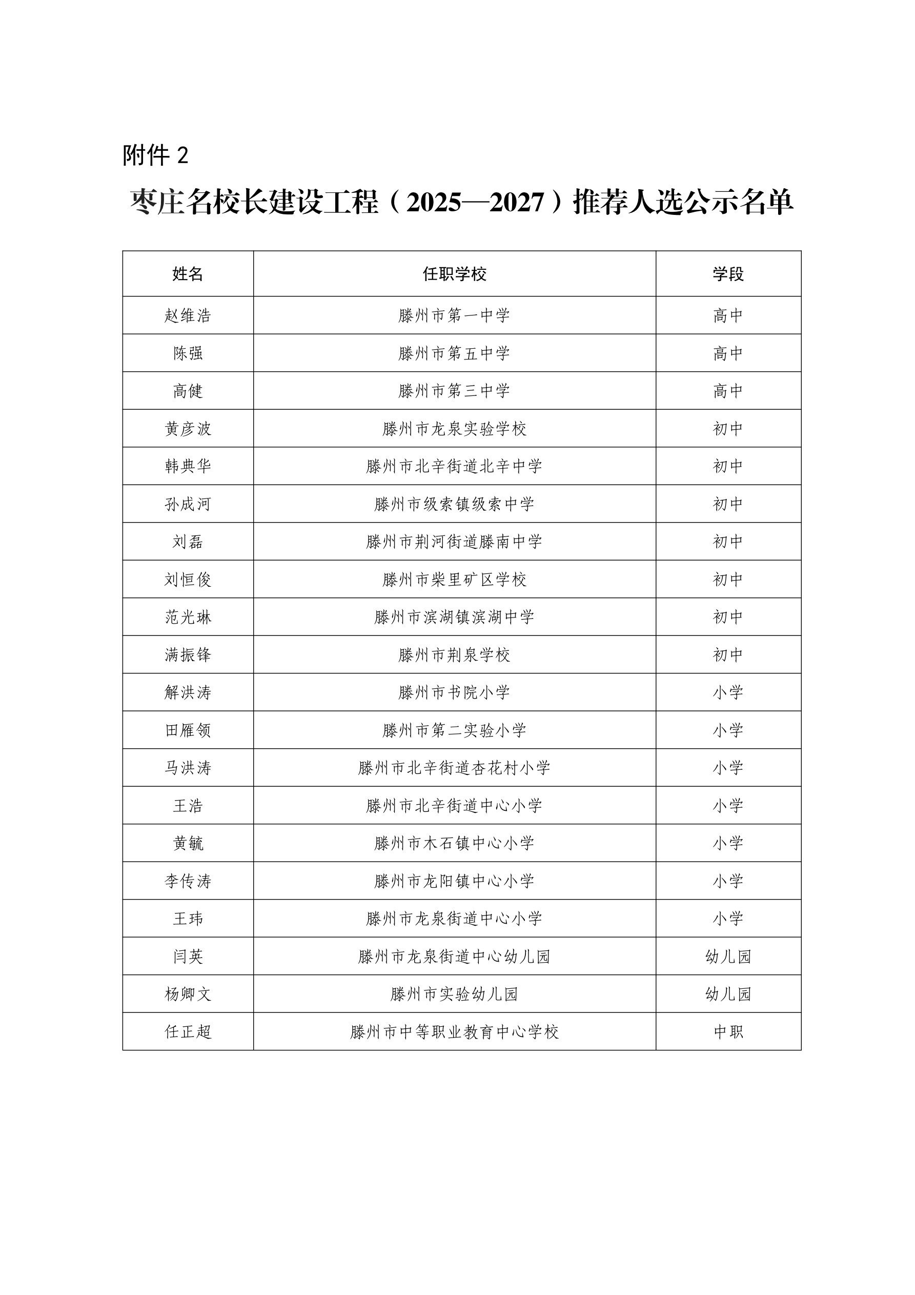 2.枣庄名校长建设工程(2025—2027)推荐人选公示名单