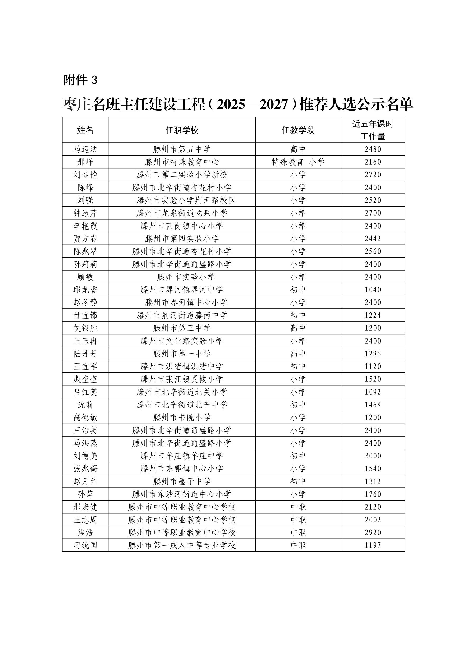 3.枣庄名班主任建设工程(2025—2027)推荐人选公示名单