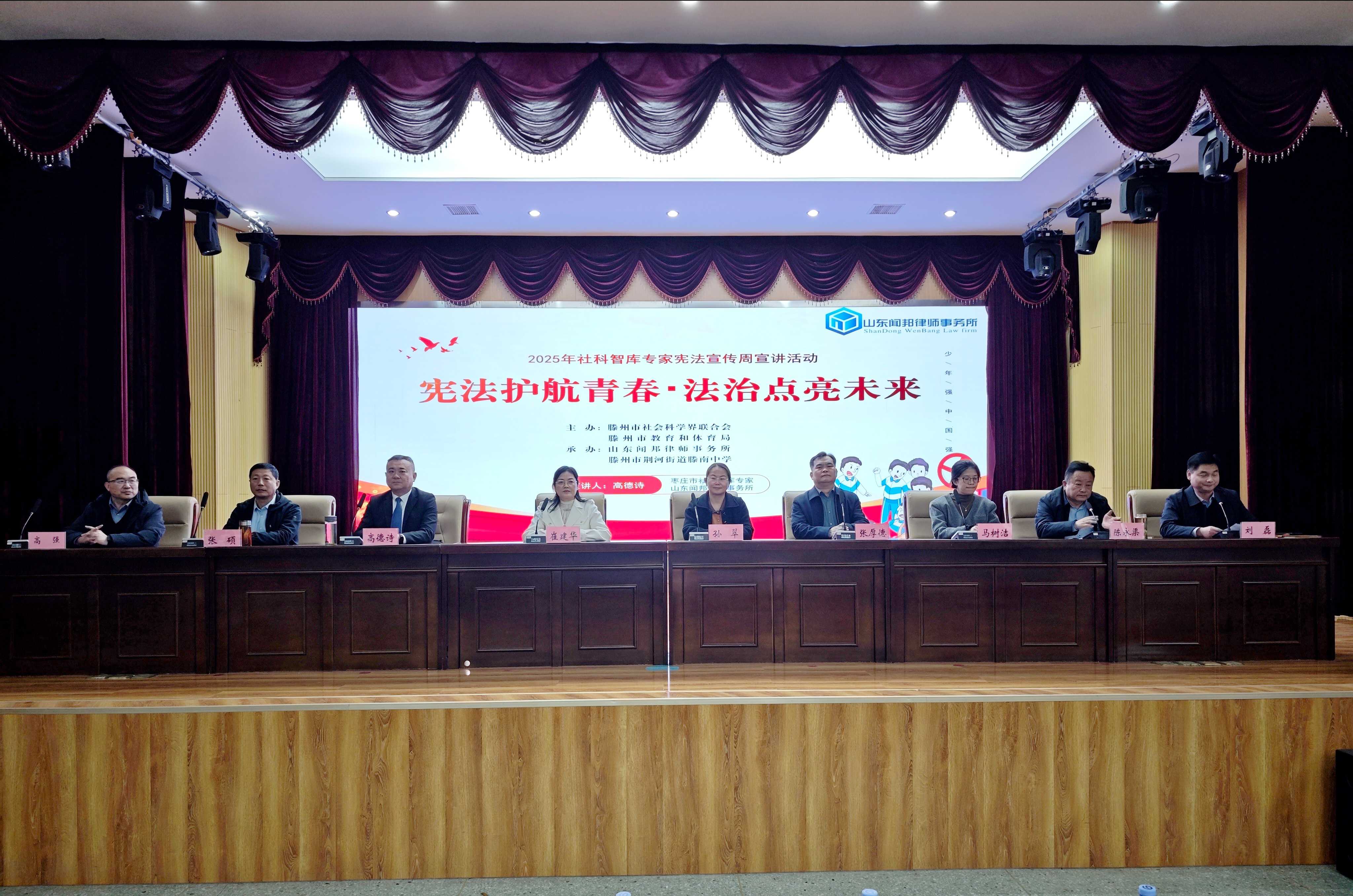 为积极弘扬社会主义法治精神,增强青少年学生的法治观念和自我保护意识,近日,“宪法护航青春 法治点亮未来”宪法宣传周宣讲活动在荆河街道滕南中学举办。滕州市社科联副主席孙翠,市教育体育局党组成员、副局长张厚德参加活动。