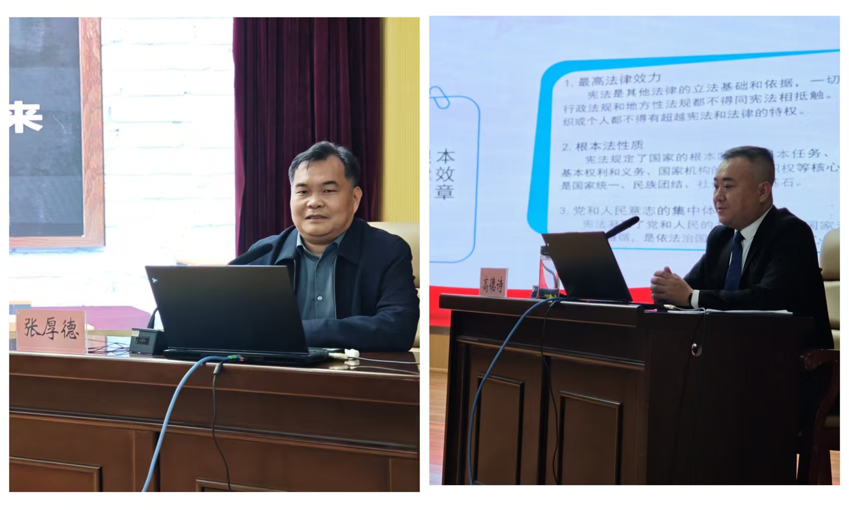 张厚德在活动中作主题宣讲。他从法律的重要地位出发,阐述了法治育人的核心思想,结合校园场景与成长痛点,清晰划定可为与不可为的行为边界,给青少年学生指明了正确的价值方向。他鼓励同学们把对法律的信任和敬畏牢牢记在心里,用法治精神为青春成长筑牢坚实的法治安全屏障。