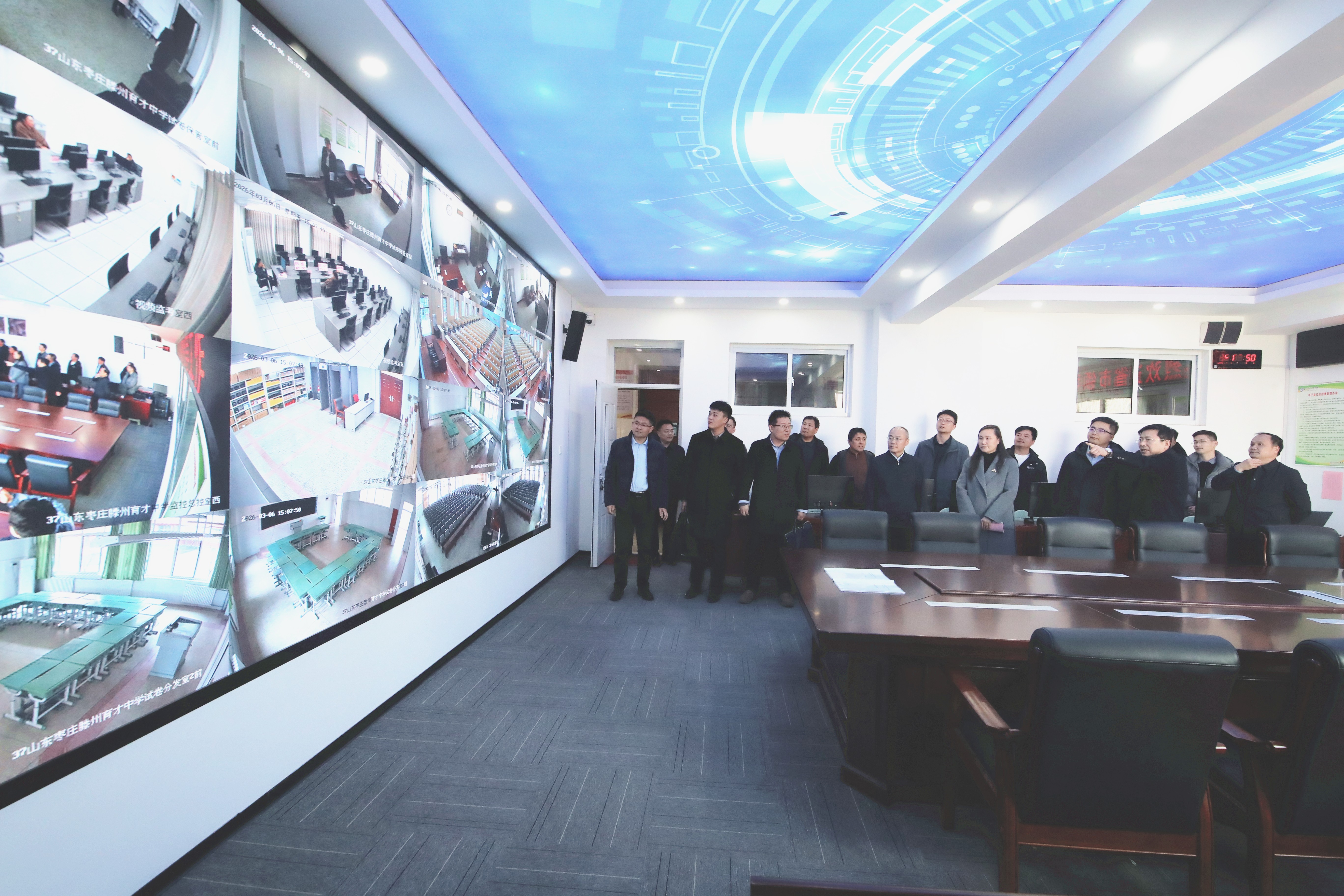 验收组一行首先听取了市育才中学关于考点建设情况的汇报,随后分组查阅了档案材料,并实地查看了考点总控室、保密室等重点区域,对考点的硬件设施、设备配置、人员配备、组织管理和应急处置等方面进行了全面细致的检查。