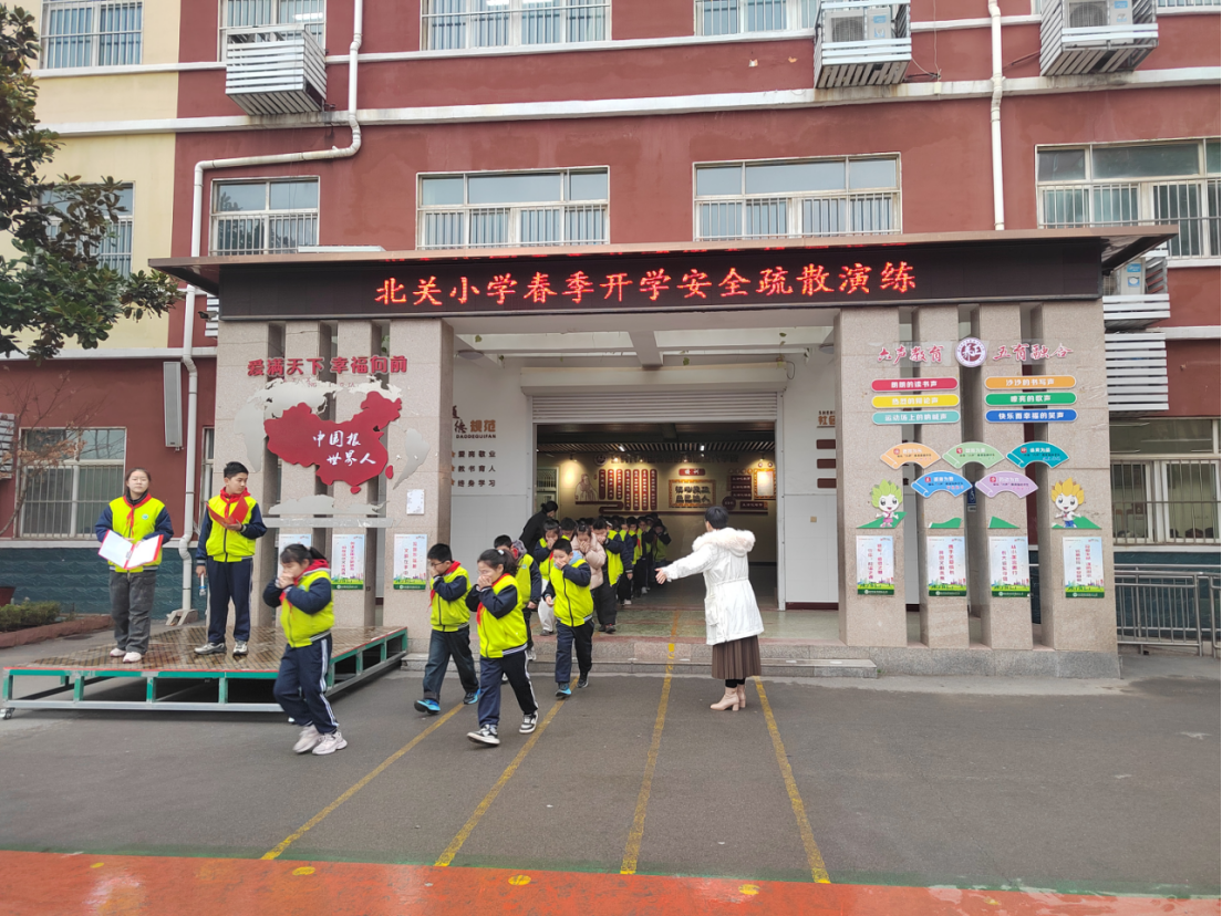 警钟长鸣,筑牢校园“防火墙”。北辛街道北关小学上演“火场逃生”实战演练。急促的警报声响起,同学们在老师引导下湿巾捂口鼻、弯腰速撤离,常态化疏散演练让安全技能成为本能。通过案例剖析、互动问答,将消防知识深植心间,以“演”筑防,以“练”备战,共同营造平安和谐的校园环境。