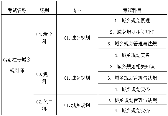 通过全国统一考试取得一级注册建筑师资格证书并符合《注册城乡规划师职业资格制度规定》(以下简称《规定》)中注册城乡规划师职业资格考试报名条件的,可免试《城乡规划原理》和《城乡规划相关知识》科目,只参加《城乡规划管理与法规》和《城乡规划实务》2个科目的考试。
