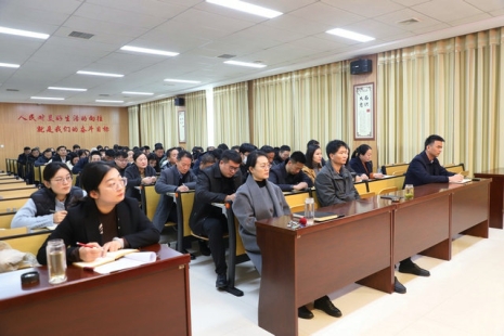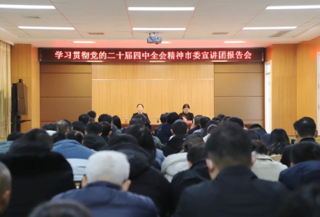 12月4日,滕州市委组织部副部长、老干部局局长,市人社局党组书记、局长张美林到东沙河街道宣讲党的二十届四中全会精神。东沙河街道副科级以上领导干部、全体机关干部参加。