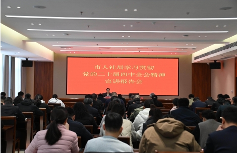 为全面深入学习贯彻党的二十届四中全会精神,12月4日,市人社局举办学习贯彻党的二十届四中全会精神宣讲会,滕州市委组织部副部长、老干部局局长,市人社局党组书记、局长、直属机关党委书记张美林作专题宣讲报告。市人社局副科级以上领导干部,局机关党支部全体党员,就业中心及社保中心党总支、党支部委员参加学习。