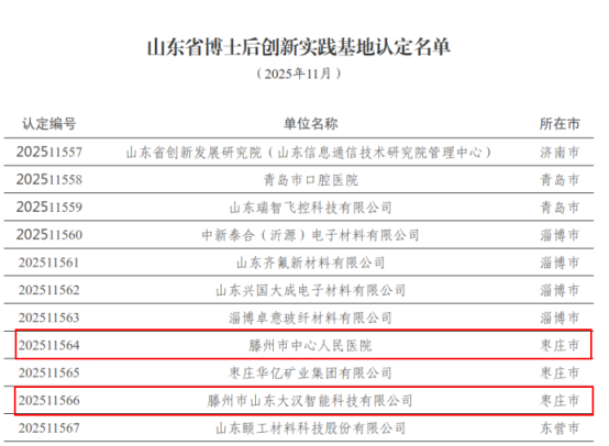 近日,山东省人力资源和社会保障厅发布《关于山东省博士后创新实践基地认定名单的公告》,滕州市中心人民医院、滕州市山东大汉智能科技有限公司被成功认定为山东省博士后创新实践基地。截至目前,我市已设立国家级博士后科研工作站2家,山东省博士后创新实践基地8家。