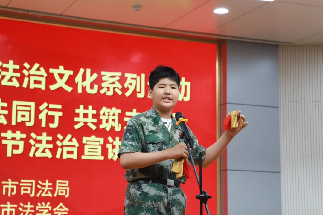 活动现场,通过普法讲座和曲艺节目相结合的形式进行,山东宁泰律师事务所刘彤律师用通俗易懂的语言,结合典型案例,现场讲解了《中华人民共和国民法典》《中华人民共和国未成年人保护法》等相关内容,通过法律知识竞答的形式,引导学生建立深度学习法律知识的兴趣,鼓励学生们更好地尊法学法守法用法。普法曲艺表演快板《安全知识记心间》和相声《校霸漫谈》,用寓教于乐的方式,受到了现场师生们的一致欢迎。