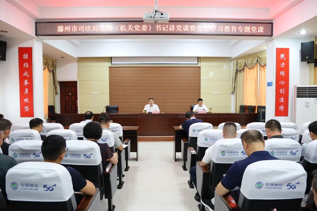 7月10日,市司法局党组(机关党委)书记讲党课暨党纪学习教育专题党课活动在市司法局六楼会议室举行。市司法局党组书记、局长、机关党委书记、四级调研员吕卫民出席会议并作了题为《学党纪法规 守纪律规矩 锻造忠诚干净担当的新时代司法行政铁军》的专题党课。市司法局党组成员、政治处主任、机关党委副书记王彦超主持会议,局属各党组织书记、全体党员参加了会议。