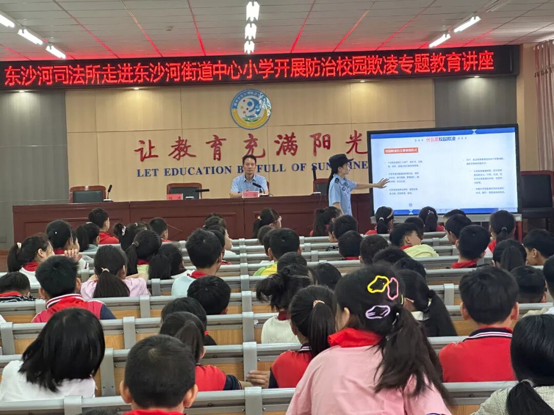为了营造安全、健康的校园氛围,丰富学生防欺凌知识,增强学生应对抵制欺凌的能力,9月30日,东沙河司法所、东沙河派出所联合走进东沙河六合小学开展防治校园欺凌专题教育讲座。