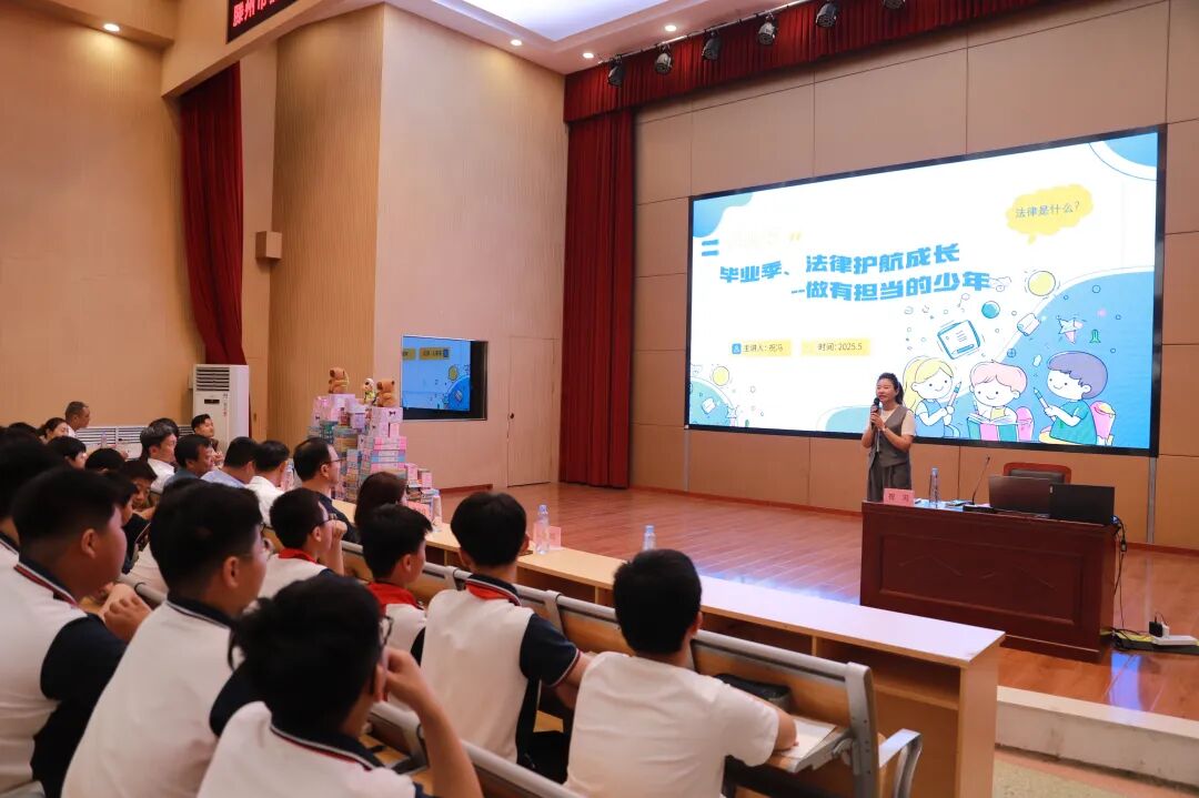 活动共分两个阶段,首先在杏花村小学“杏坛”讲堂开展“法治润童心 平安伴成长”法治宣讲,邀请山东宁泰律师事务所祝冯律师围绕未成年人保护、预防校园欺凌等内容,结合生动案例,以通俗易懂的语言进行讲解。“遇到校园欺凌该如何保护自己?”“哪些行为属于侵害未成年人权益?”一个个贴近生活的问题引发同学们热烈讨论。在互动问答环节,同学们踊跃举手,积极参与,现场气氛十分活跃。宣讲结束后,全体学生在祝冯律师带领下进行了庄严的“法律宣誓”,一句句铿锵有力的誓言,表达了同学们自觉遵守法律、维护法律尊严的决心。
