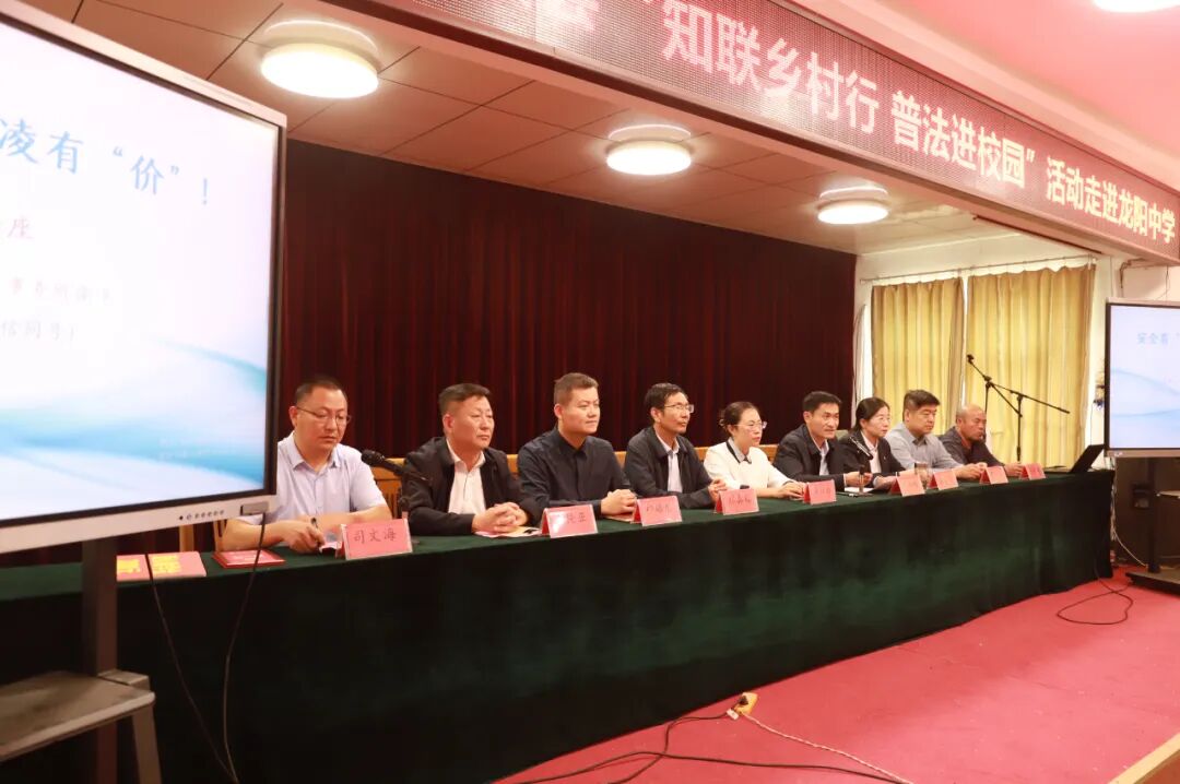 会议由龙阳中学校长李纯正主持,滕州市教育和体育局四级主任科员刘玲玲,滕州市司法局副局长谭洪伟,龙阳学区主任刘真标,龙阳司法所负责同志和山东科圣律师事务所、山东君雅律师事务所代表出席会议,学校师生代表共计200余人参加。