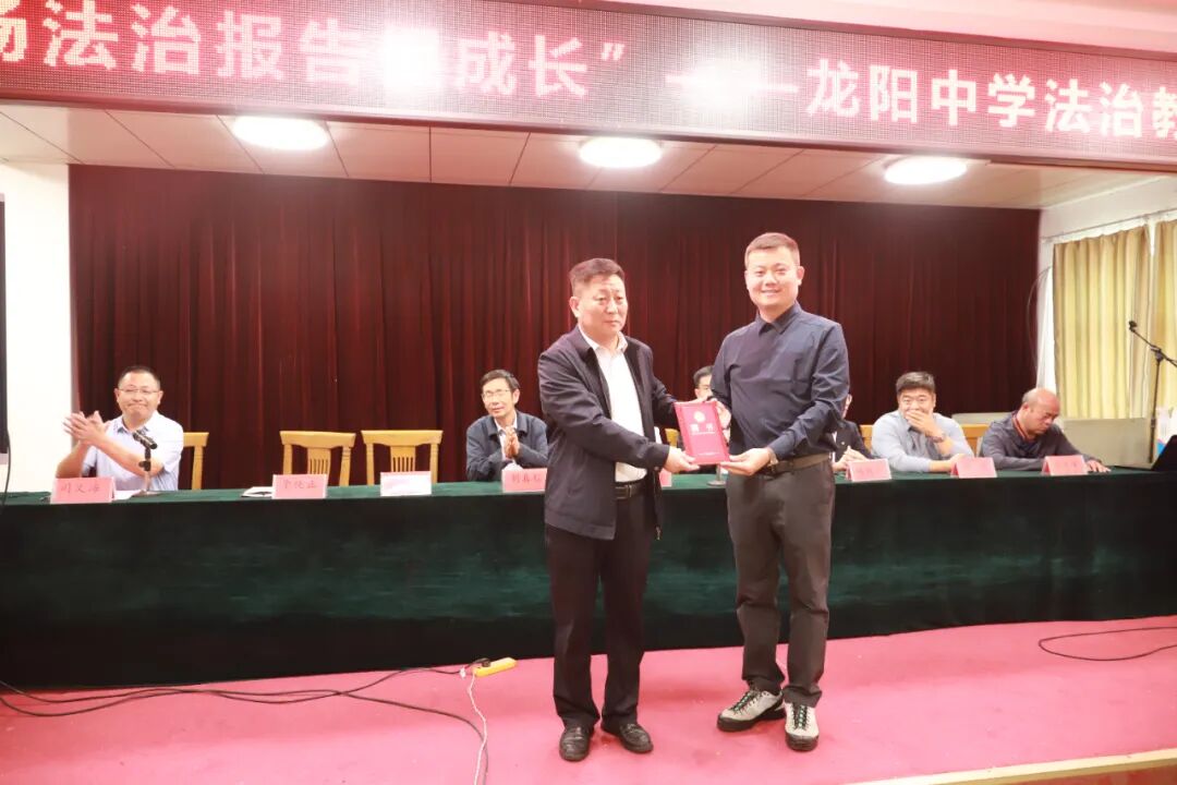 随后,举行了法治副校长聘任仪式。龙阳司法所所长邱皓然受聘为龙阳中学法治副校长,龙阳中学校长李纯正为其颁发聘书。在“百场法治报告促成长”活动环节中,山东科圣律师事务所韩鹏律师以《安全有“法” 欺凌有“价”》为题开展授课。韩鹏律师结合真实案例,围绕校园欺凌、网络安全、人身安全等青少年密切相关的话题,用通俗的语言解析法律条文,指导学生在遇到问题时如何运用法律武器维护自身合法权益,现场师生积极互动,学习氛围浓厚,法治教育成效显著。