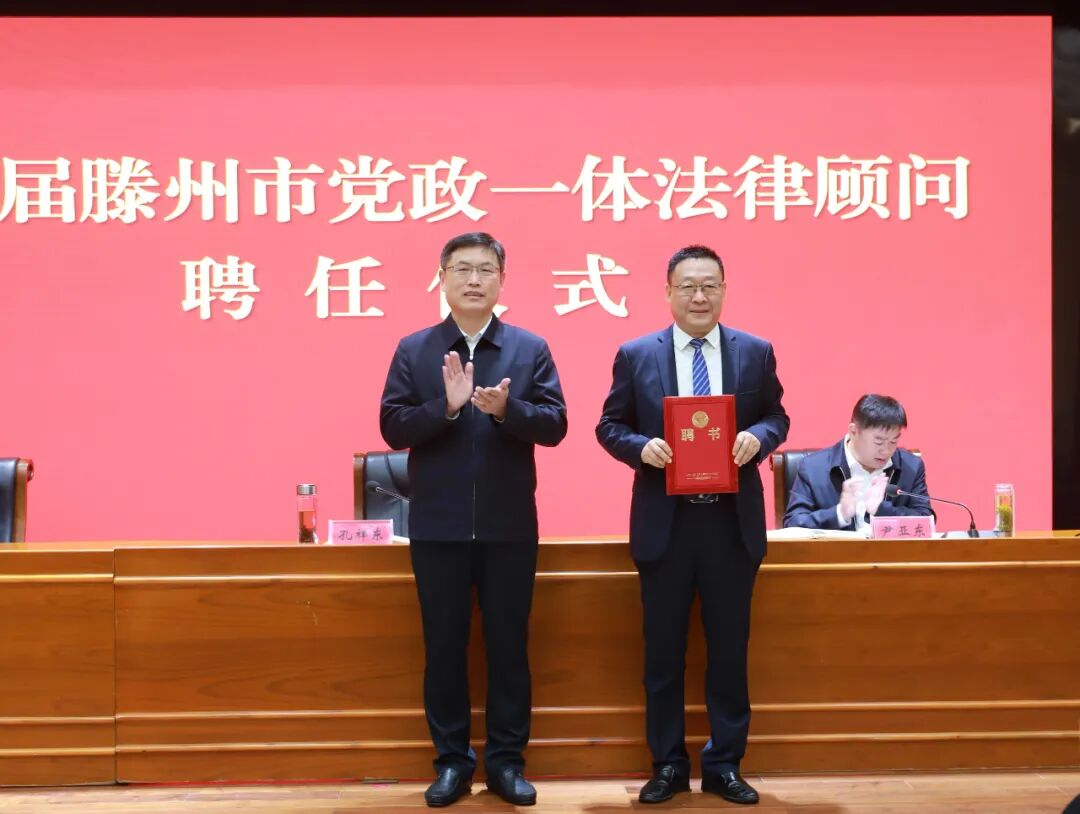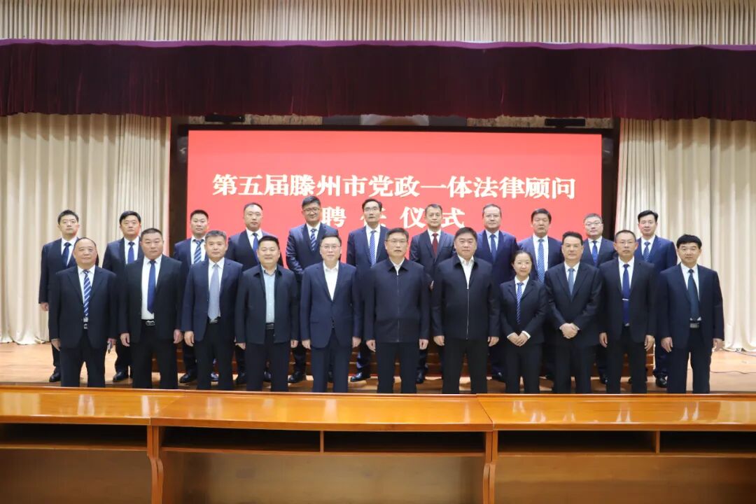 会议学习了山东省委依法治省办2025年第二次全体会议精神,传达了《滕州市2025年法治建设实地督察方案》《中共滕州市委办公室 滕州市人民政府办公室关于聘请第五届滕州市党政一体法律顾问的通知》,为新当选的第五届滕州市党政一体法律顾问颁发了聘书。于绍强、王刚、王洪伟、冯克法、朱琳、刘慧洋、李岳、宋先伟、邱耀、张成龙、林琳、庞宜刚、孟阳、孟凡跃、赵永跃、袁克永、聂震、夏青、徐斌、董伟等20名律师受聘担任第五届滕州市党政一体法律顾问。