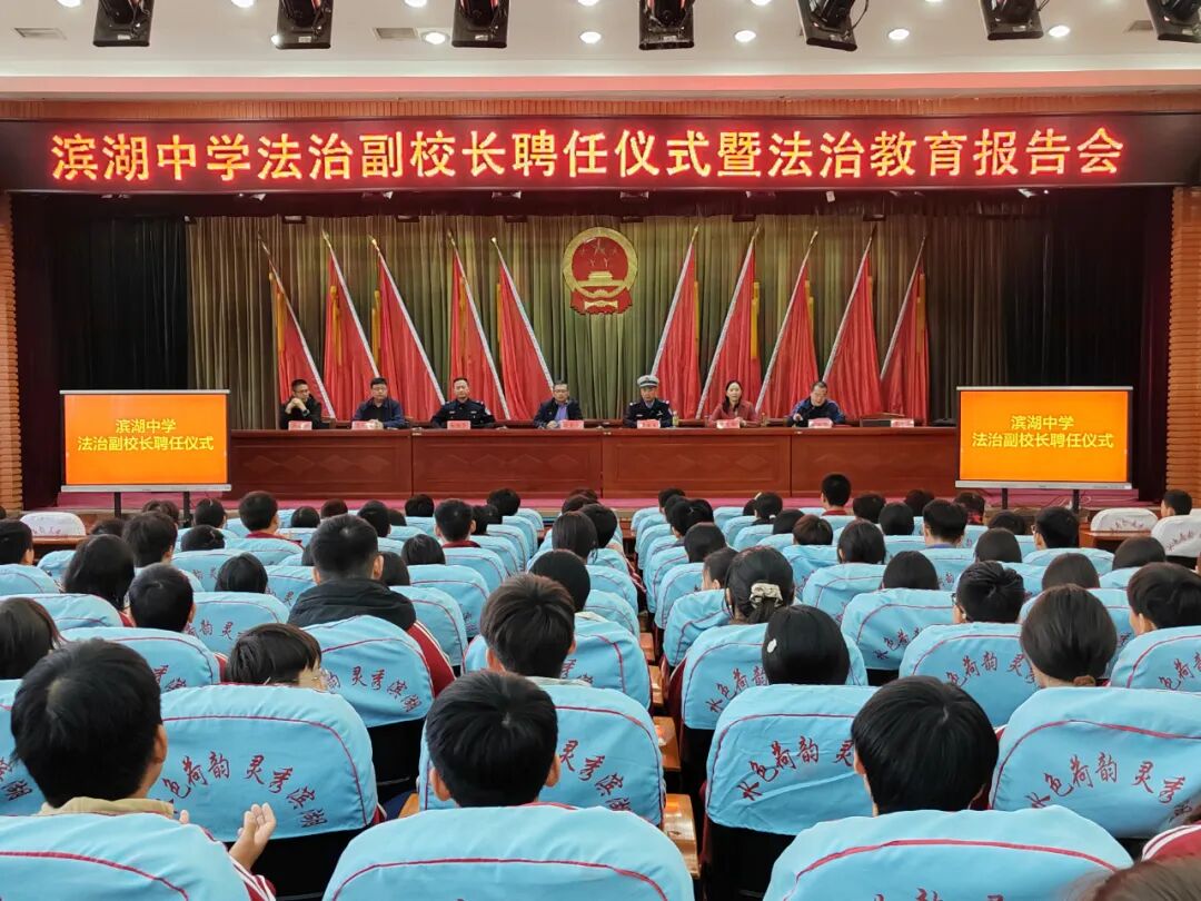 为进一步加强校园法治安全教育,提升全体师生的法律意识和自我保护能力,营造平安、和谐的校园环境,10月30日上午,滨湖中学联合滨湖司法所、滨湖派出所、滨湖交警中队等部门举行法治副校长聘任仪式暨法治教育报告会。