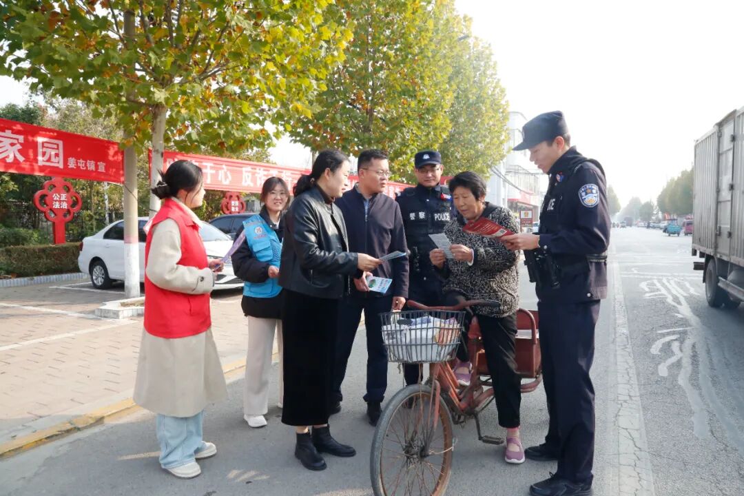 为切实筑牢辖区反诈防诈“防护网”,有效提升群众的风险防范意识与自我保护能力,从源头遏制各类诈骗犯罪案件的发生。近期,姜屯司法所与镇派出所、平安办、志愿者联合开展“防范于心、反诈于行”防范电信网络诈骗知识宣传活动。