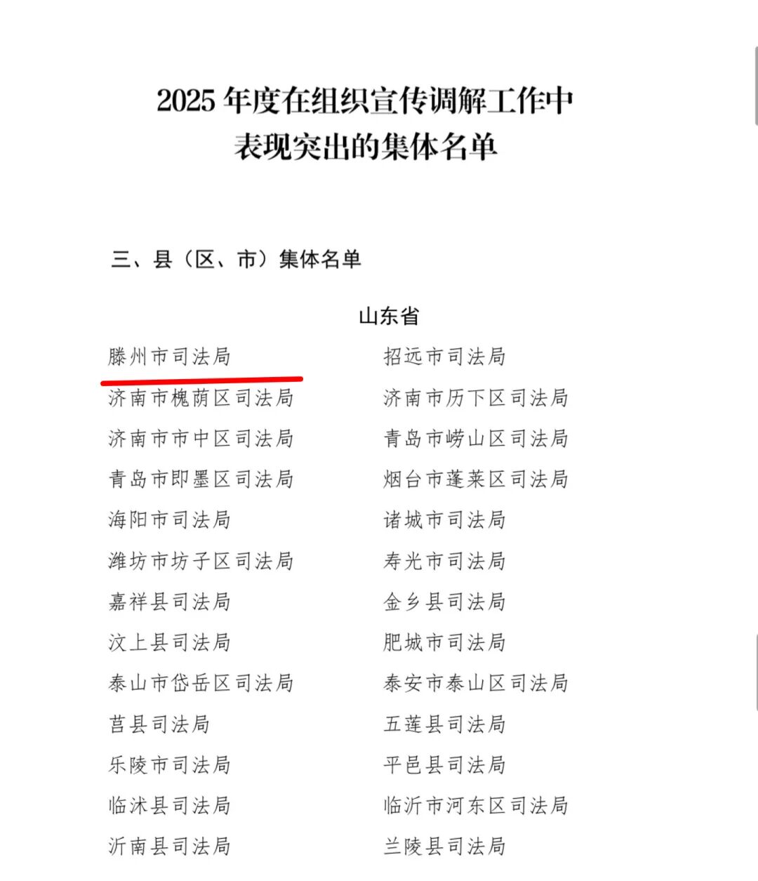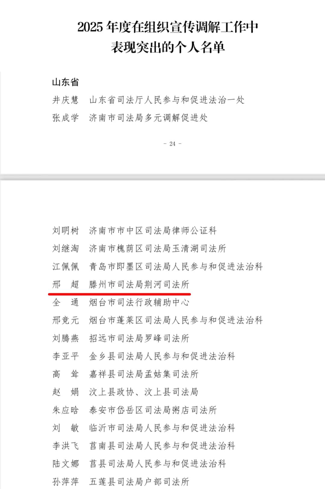 近日,中华全国人民调解员协会印发《关于通报表扬2025年度在组织宣传调解工作中表现突出的集体和个人的通知》,滕州市司法局荣获“全国组织宣传调解工作表现突出集体”称号,同时,荆河司法所所长邢超获评“全国组织宣传调解工作表现突出个人”荣誉称号。