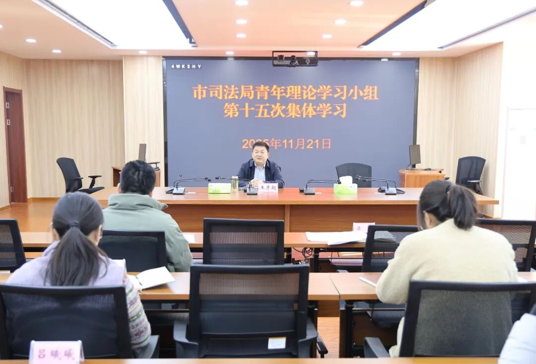 11月21日,市司法局青年理论学习小组开展第十五次集中学习,市司法局党组成员、政治处主任王彦超主持会议,传达并领学党的二十届四中全会精神,青年理论学习小组全体成员参加学习。