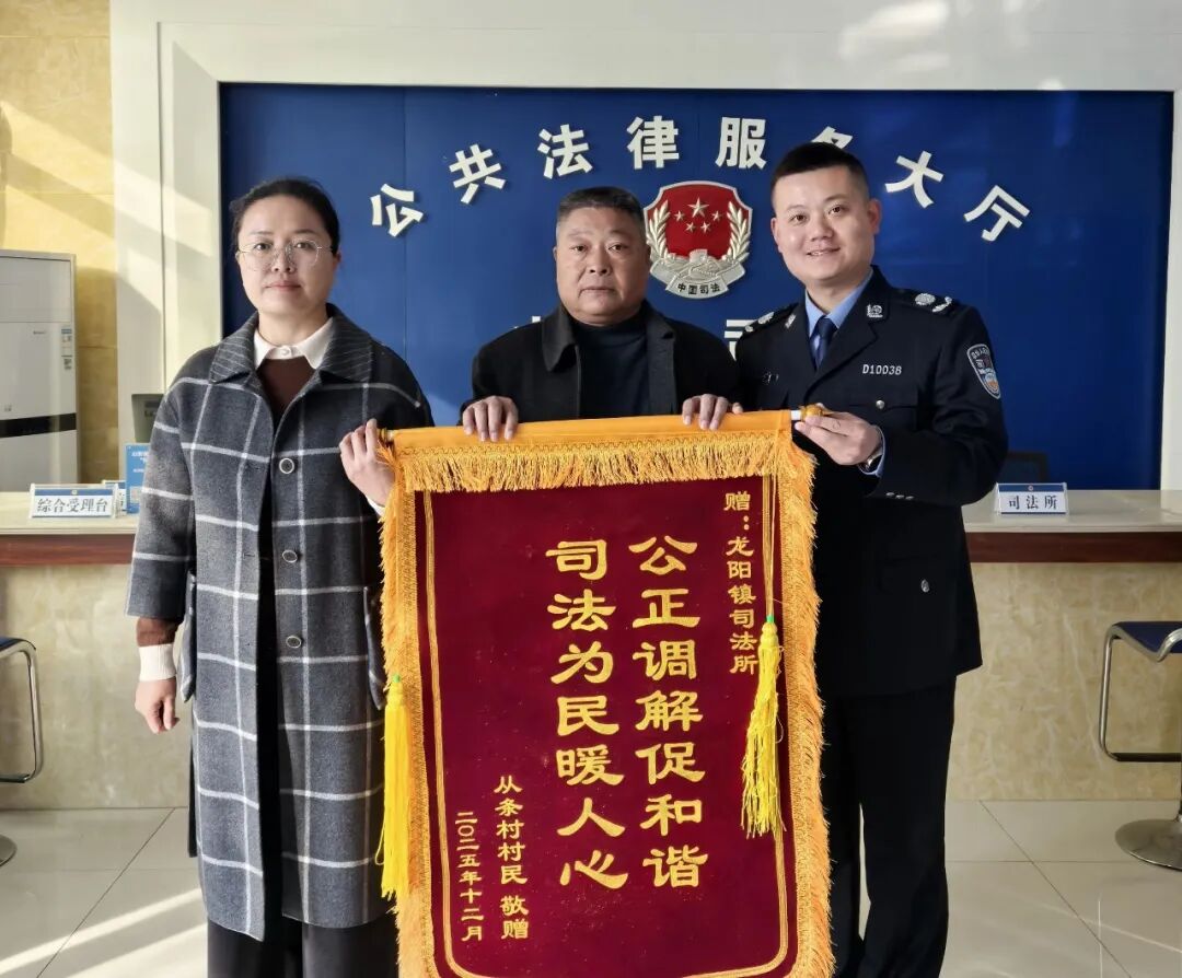 2025年12月15日,刘某某将一面烫金锦旗送到司法所,上面"公正调解促和谐,司法为民暖人心"十四个金字熠熠生辉。"要不是你们一趟趟走访、一次次劝说,我们两家早成仇人了!"刘某某深情的紧握调解员双手。