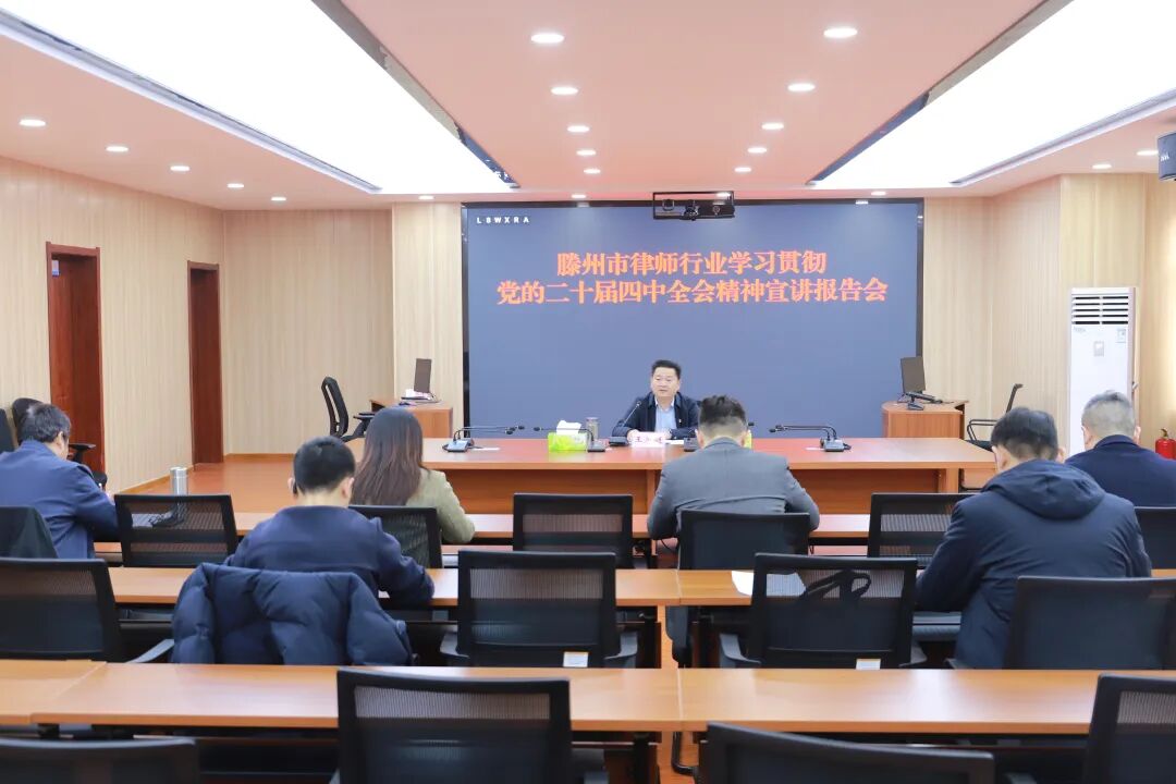 12月19日,滕州市律师行业召开学习贯彻党的二十届四中全会精神宣讲报告会暨行业党委(扩大)会议,市司法局党组成员、政治处主任、市律师行业党委书记王彦超同志主持会议并作宣讲报告。市律师行业党委(纪委)班子成员,市律师协会会长、副会长,监事长、副监事长参加会议。
