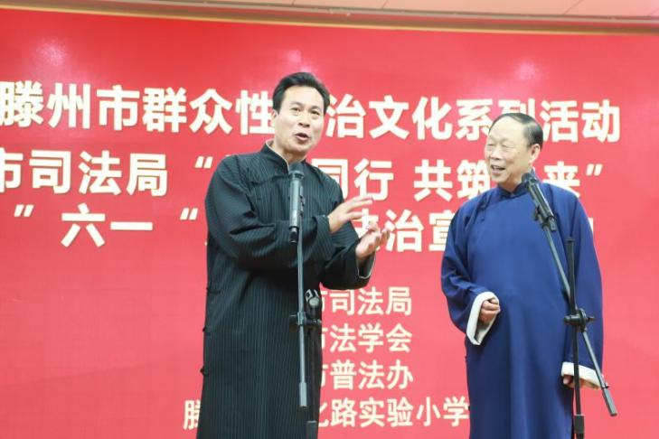 相声被列入滕州市第八批(县、区)级非物质文化遗产后,滕州市司法局将传统艺术与现代法治故事相结合,编排快板《安全知识记心间》和相声《校霸漫谈》,通过“曲艺+普法”的方式开展普法进校园活动。市委政法委创作《反诈网络》小品,北辛派出所借助“快板”的表演形式,走进社区进行法治教育宣传。举办滕州市2025年群众性法治文化系列活动——法治文艺巡演暨“非遗传承+普法宣传”作品进乡村活动,推动了普法宣传从“单向输出”到“沉浸互动”转变,让群众在欣赏互动中,自然接受法治文化浸润,实现了传统文化和法治精神的深度交融。