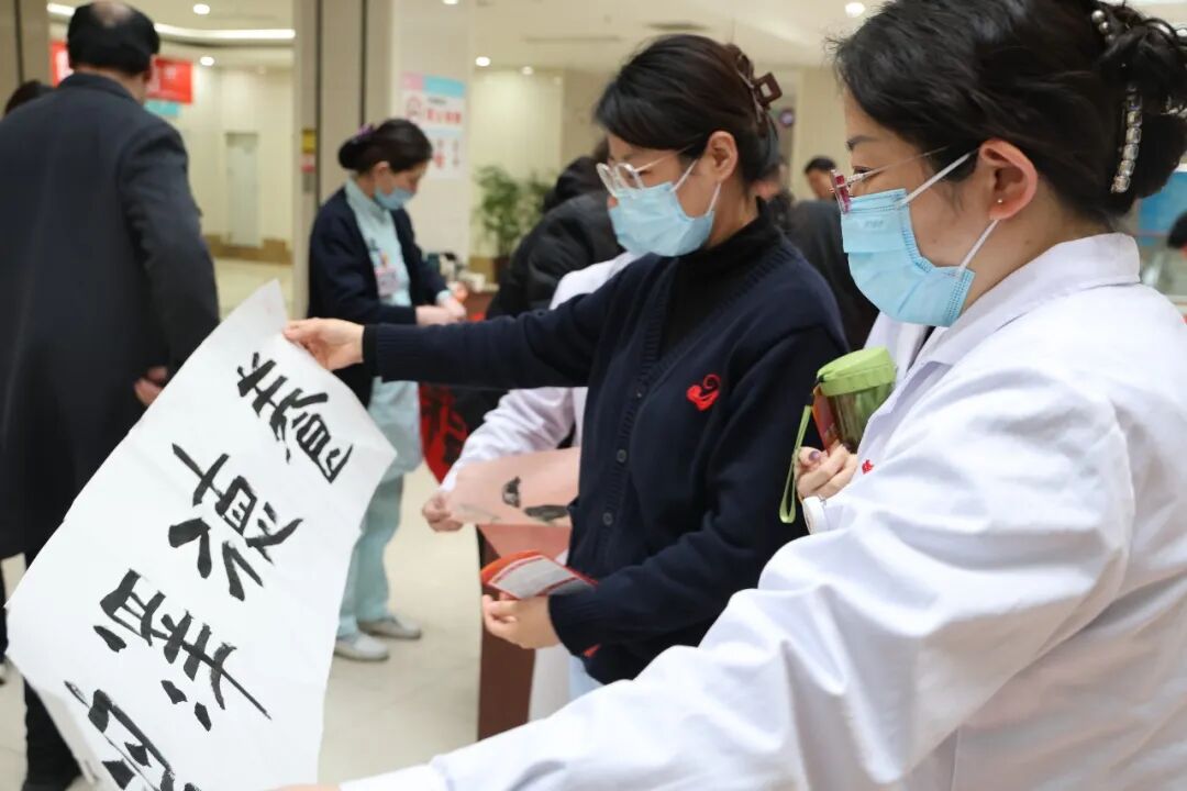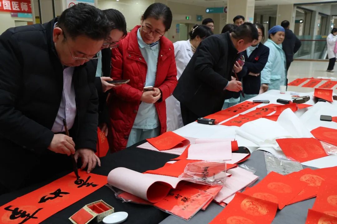 活动现场,市政协书画院的4名书法家现场挥毫泼墨,创作出富有现代气息、饱含美好祝福的的法治春联,“法如日月明千里 律似春风暖万家”,法治精神巧妙融入传统文化之中,给大家送去新春祝福的同时,也送去了法律知识。前来领取春联的群众、医院职工络绎不绝,受到大家的欢迎。