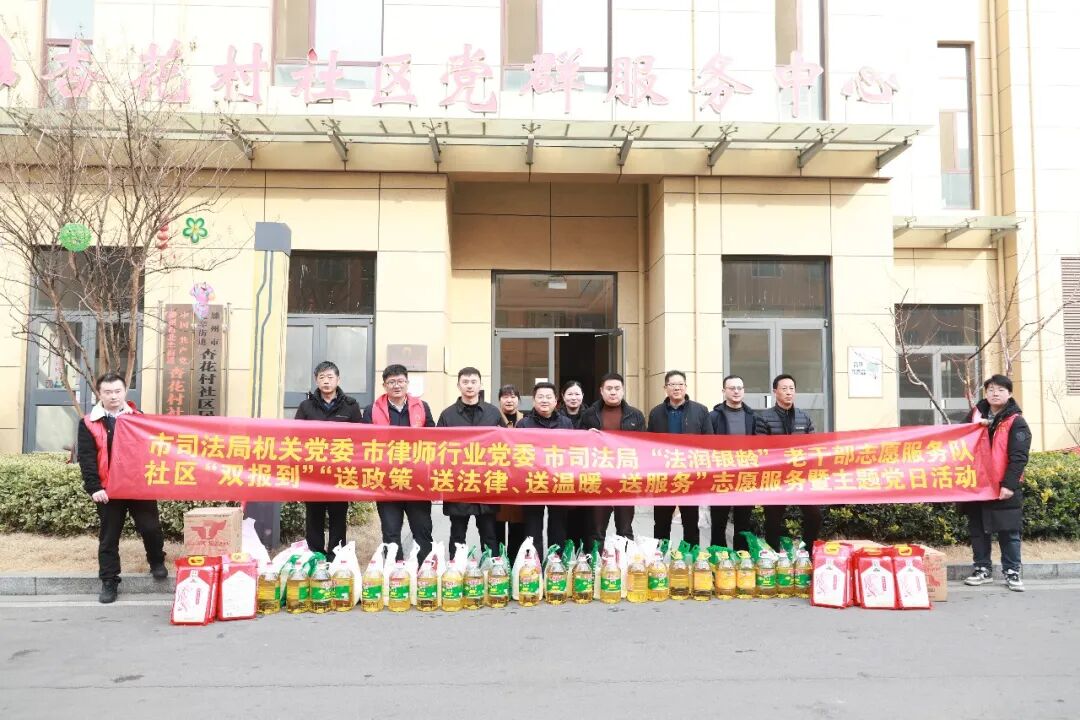 春节将至,暖意浓浓。2月5日,市司法局到北辛街道杏花村社区开展“双报到”、“送政策、送法律、送温暖、送服务”志愿服务暨主题党日活动,市司法局党组成员、政治处主任、市律师行业党委书记王彦超,市司法局机关党委、市律师行业党委所属部分党支部党员代表、市司法局“法润银龄”老干部志愿服务队志愿者和社区干部群众参加活动。