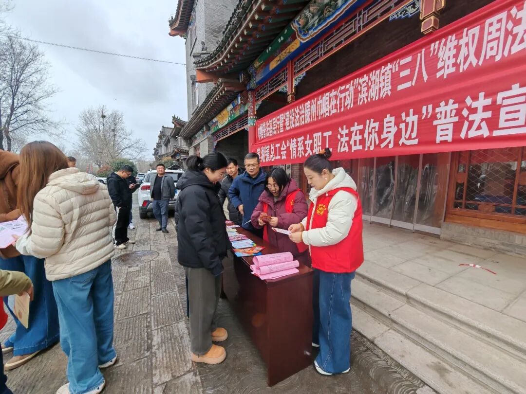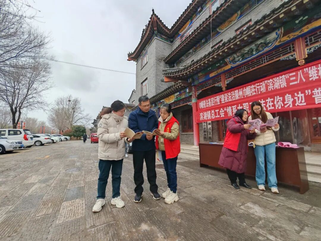 为进一步提升妇女群众的法治意识和依法维权能力,3月6日,滨湖司法所联合镇妇联、工会、团委等部门,共同开展“建设法治滕州巾帼在行动”主题普法宣传活动,为辖区女性送上一份特殊的节日礼物。