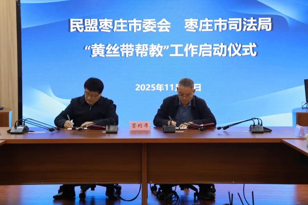 与会人员首先观摩了滕州市社区矫正中心,实地了解社区矫正工作流程,进一步加深对教育帮扶工作职能的认识。启动仪式上,枣庄市司法局与民盟枣庄市委会签订《“黄丝带帮教”工作合作协议》,双方就合作方式、推进机制等内容进行了明确。民盟枣庄市委会主委、枣庄市政府副市长刘吉忠为滕州市社区矫正中心“黄丝带帮教”基地授牌。