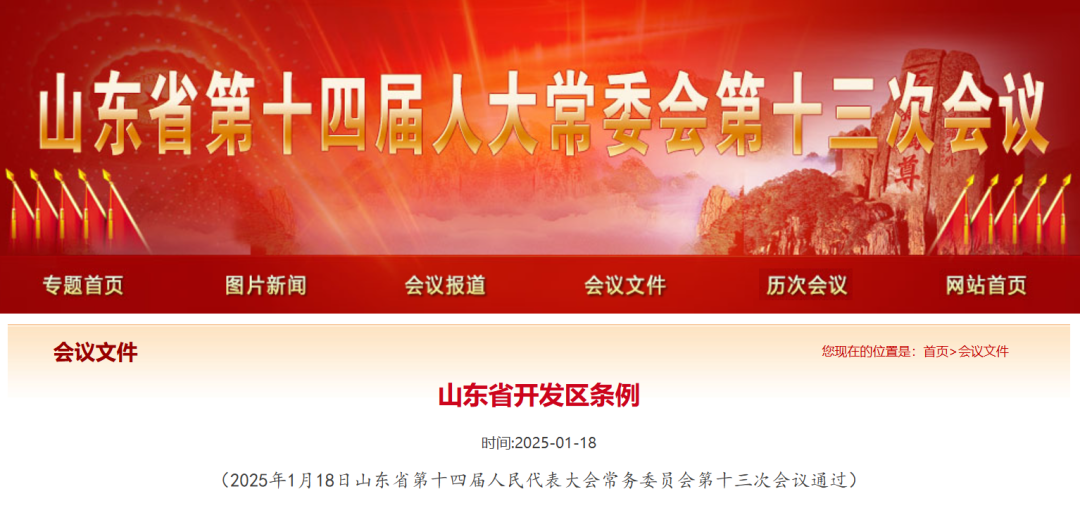 《山东省开发区条例》已于2025年1月18日经山东省第十四届人民代表大会常务委员会第十三次会议通过,现予公布,自2025年3月1日起施行。