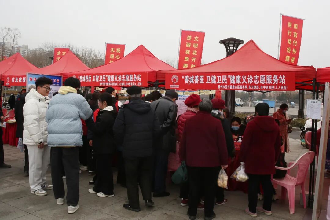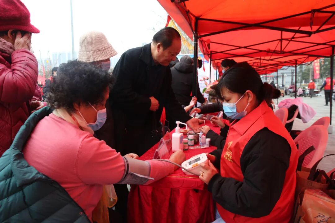 仪式活动现场,滕州市医疗健康志愿服务在健康义诊志愿服务站点,通过发放宣传资料、健康咨询和义诊等形式,向在场众提供健康知识宣传、政策宣讲、义诊咨询、中医适宜技术推广等志愿服务活动。此外,开展了免费测量血压、血糖等查体活动。此次学雷锋系列志愿服务活动发放宣传资料580余份,测量血压、血糖260余人次,健康咨询300余人次。